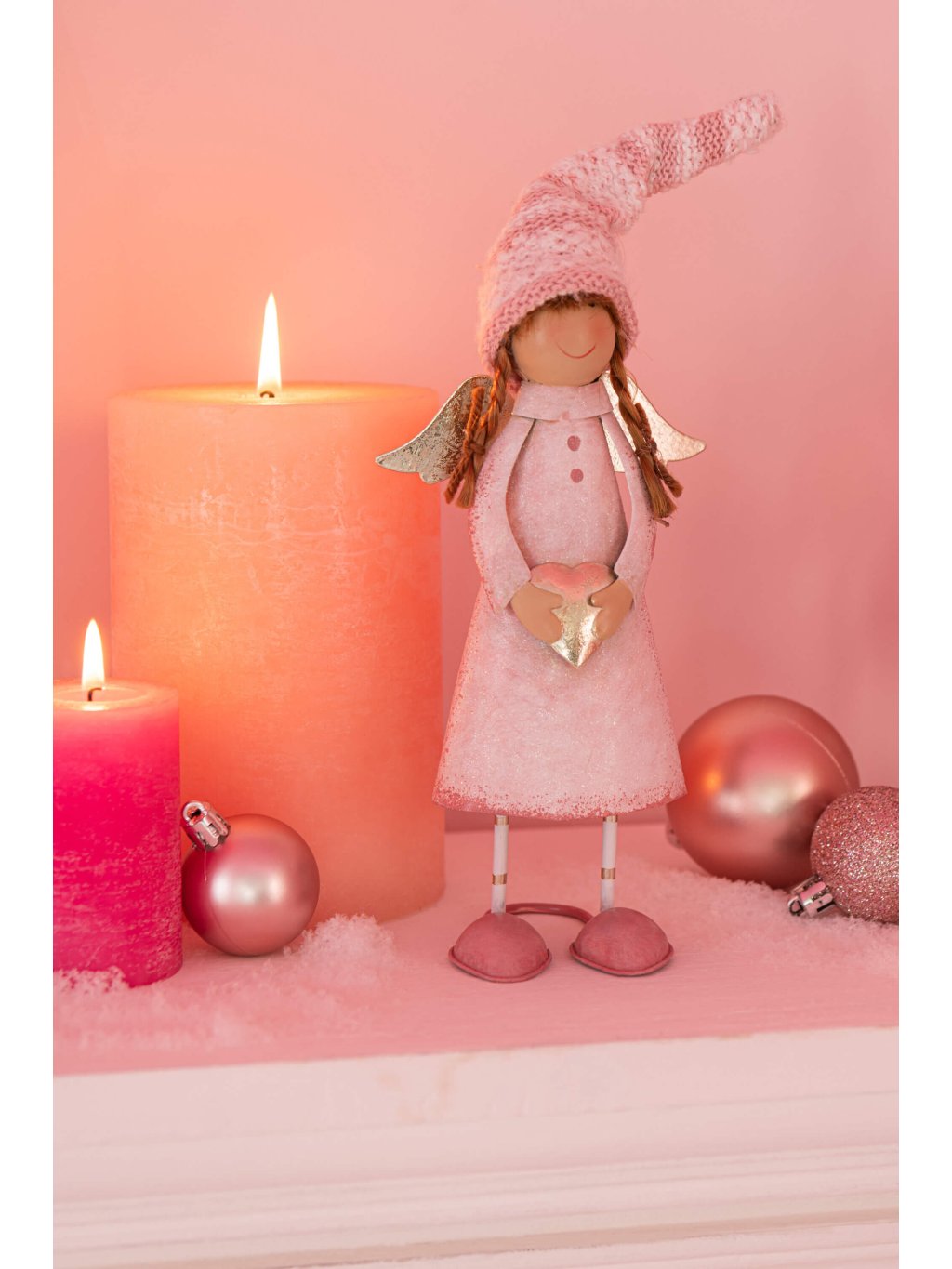 Roztomilá figúrka anjela v jemnej ružovej farbe prináša do domova pokoj a radostnú náladu. S pletenou čiapkou, zlatými krídelkami a malým srdcom či hviezdou v rukách sa stane symbolom lásky, ochrany a radosti počas celého roka.