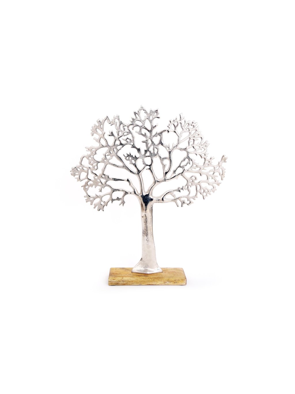Elegantný symbol rovnováhy a sily, ktorý vnesie do vášho priestoru sviežosť, pokoj a harmóniu. Tento strieborný strom života s jemne prepracovanými vetvami stojí na podstavci z mangového dreva, čo vytvára krásny kontrast medzi lesklým kovom a teplým prírodným materiálom.