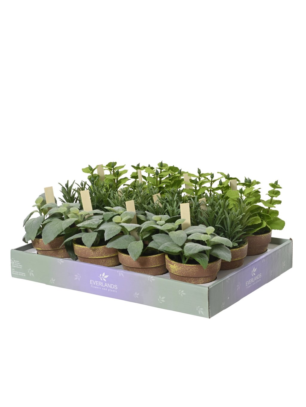 Variácie troch umelých byliniek (tymian, bazalka a mäta) pôsobí prirodzene a ľahko zapadne do moderného aj vidieckeho interiéru. Každá rastlinka má výšku približne 17 cm, šírku 15cm a je zasadená v jednoduchom kvetináči, ktorý podčiarkuje ich nenútený, čistý vzhľad.