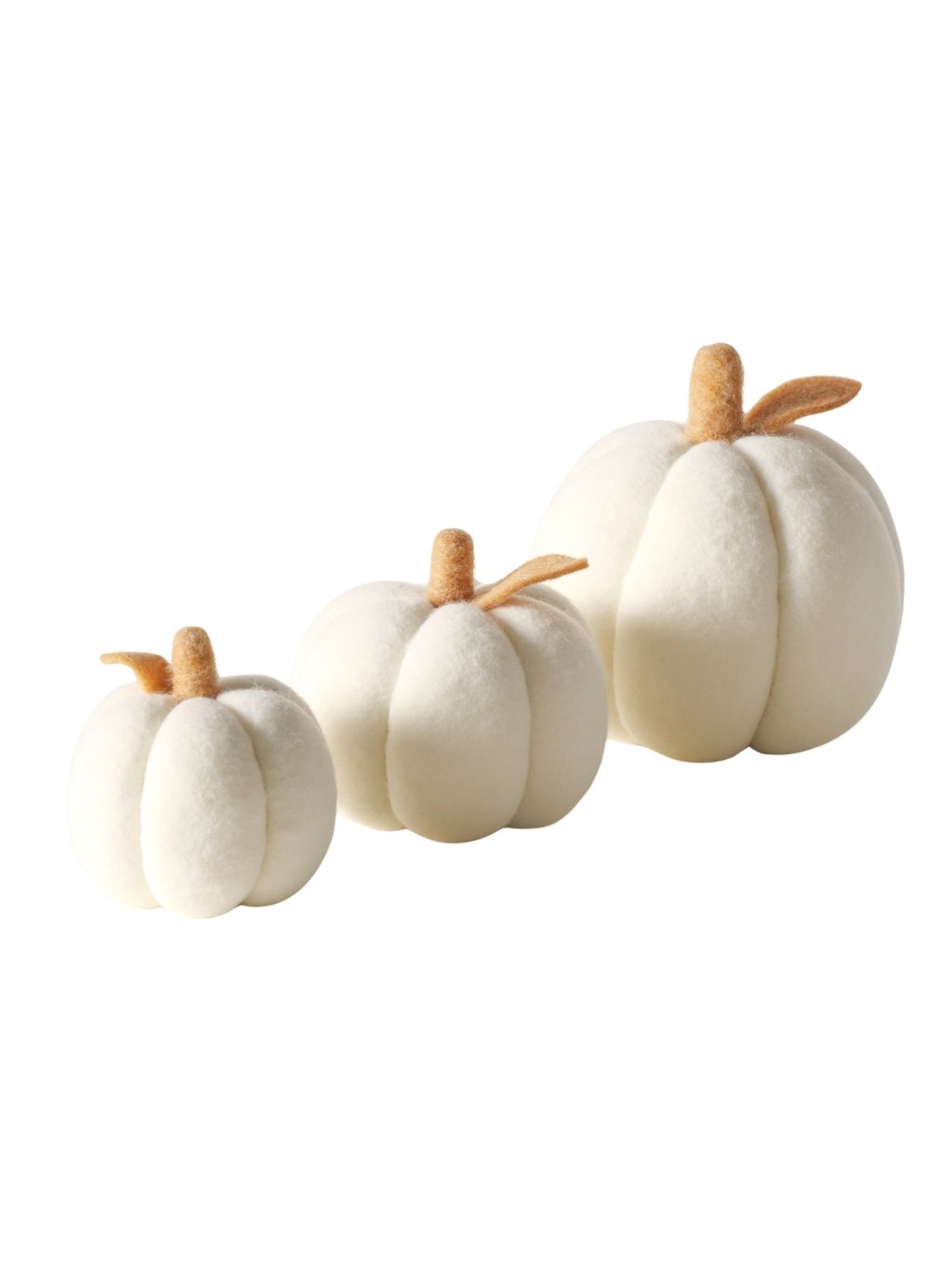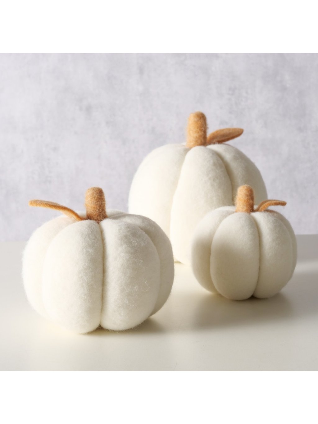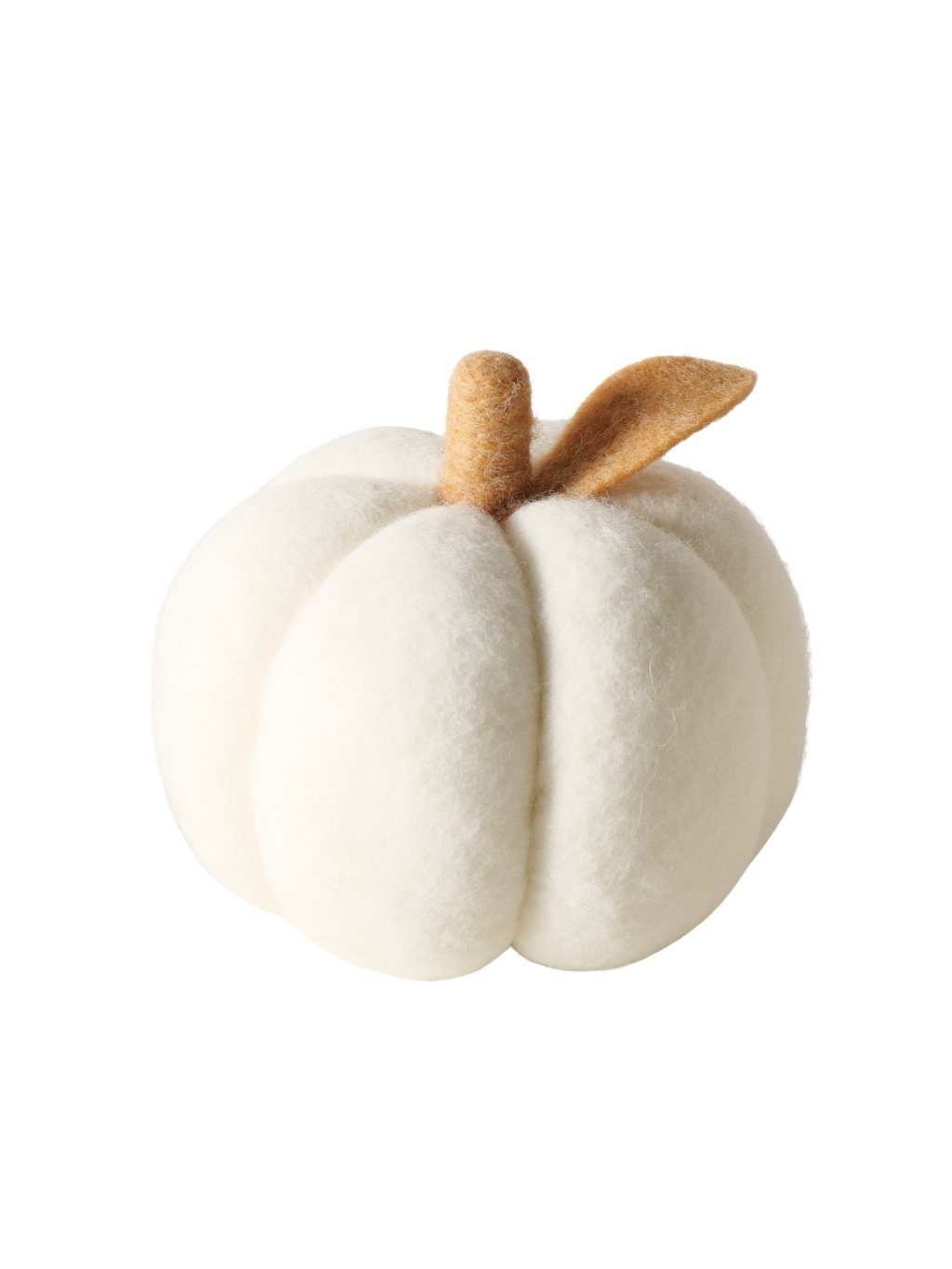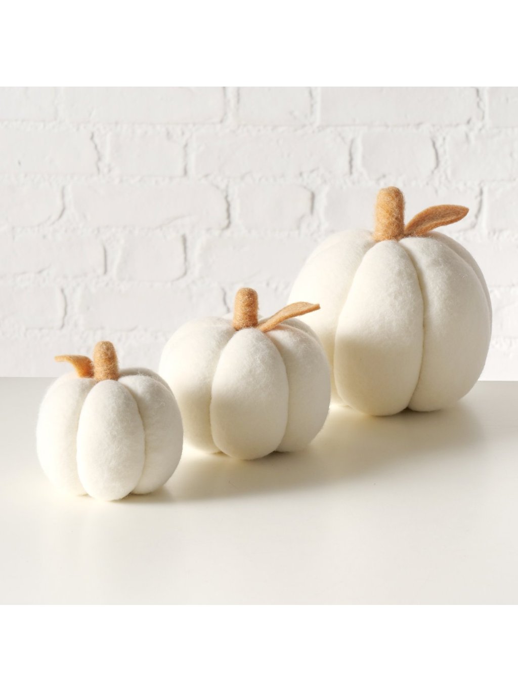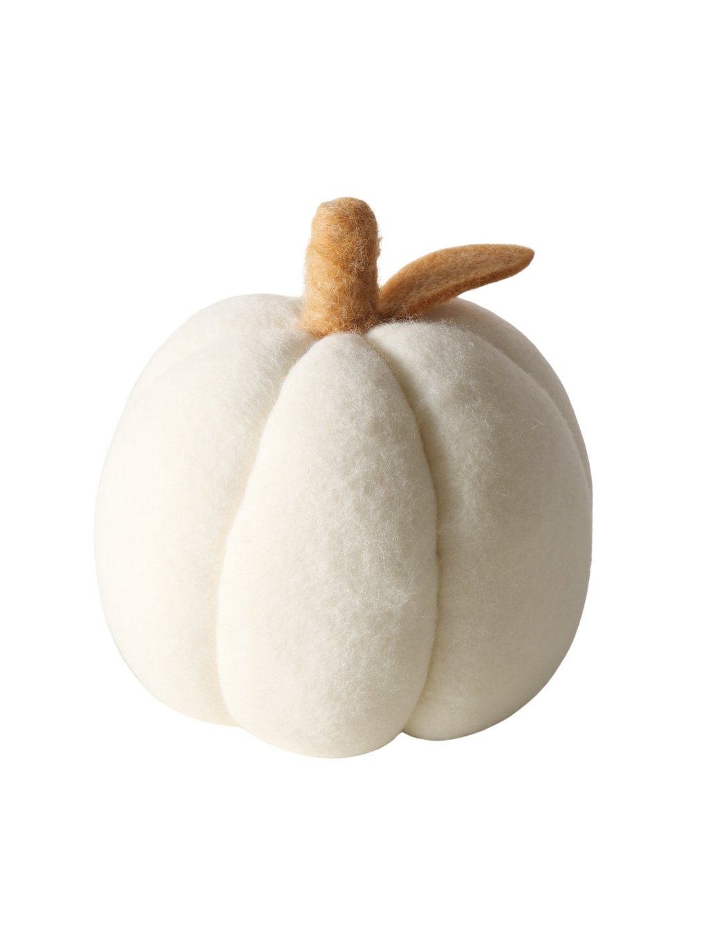 Biela textilná tekvica Tikva je nežná, ručne vyrobená doplnková dekorácia, ktorá do vášho domova vnukne hrejivú jesennú atmosféru bez nároku na údržbu. S jemným matným krémovo-bielym odtieňom a textúrou vlny kombinovanej s polyesterom pôsobí útulne aj elegantne — ideálna ako jesenný centrálny prvok v aranžmánoch na poličke, konferenčnom stolíku alebo vstupnej komode.
