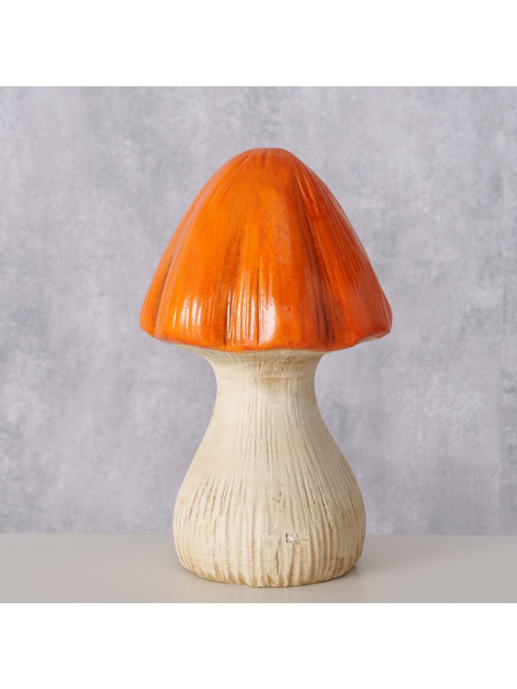 Originálny terakotový hríb Zamo je hravým prvkom, ktorý vnesie do interiéru aj exteriéru kúsok prírody. Je ručne maľovaný v prírodných tónoch – so svetlou nožičkou a sýtym oranžovým klobúčikom, ktorý pôsobí veselo a živo. Lesklá povrchová úprava podčiarkuje jeho tvar a dodáva mu jemný dekoratívny šmrnc.