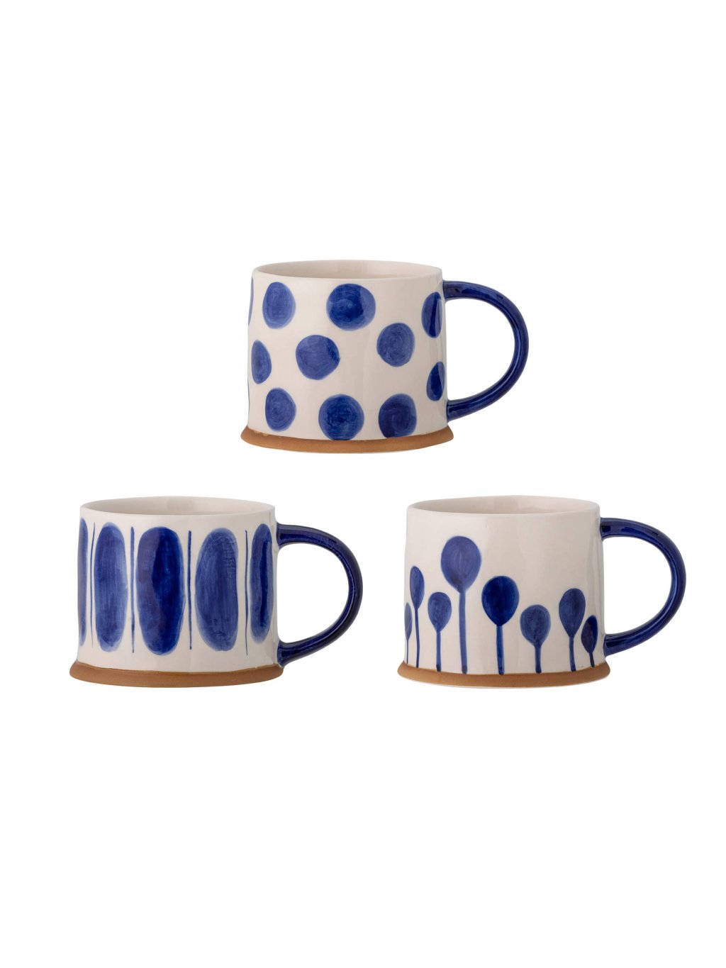 Táto sada troch kameninových šálok z kolekcie Linora prináša tri rôzne modré motívy, ktoré spolu krásne fungujú, no každá šálka má vlastný výraz. Ručne maľované bodky, línie a organické tvary v odtieňoch modrej pôsobia pokojne, mierne graficky, no stále veľmi hrejivo.