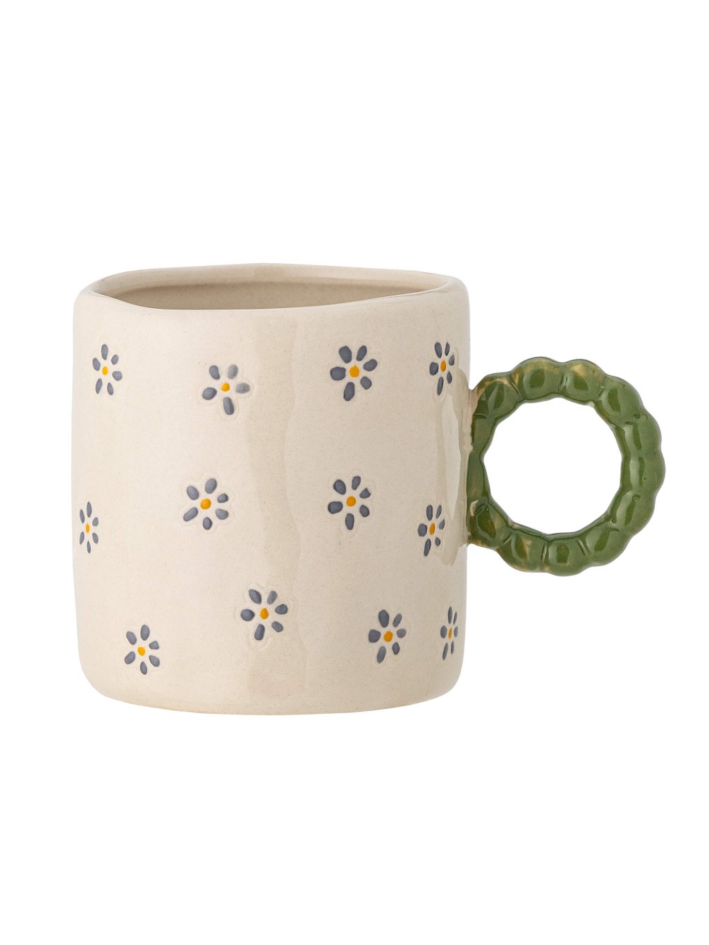 Šálka Dorothea je vyrobená z kvalitnej kameniny a zdobená ručne maľovaným kvetinovým vzorom, ktorý pôsobí hravo, no zároveň veľmi upokojujúco. Jemné farby a drobné kvietky vytvárajú pocit bezpečia a domova – presne ten, ktorý si spájame s detstvom, no radi ho máme aj v dospelosti.