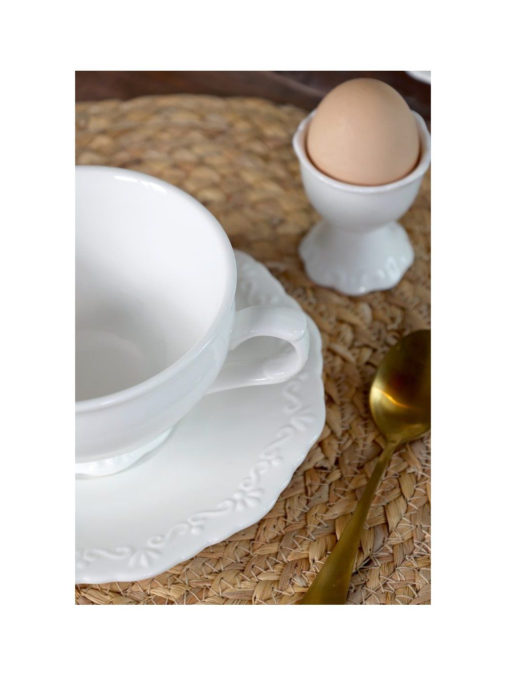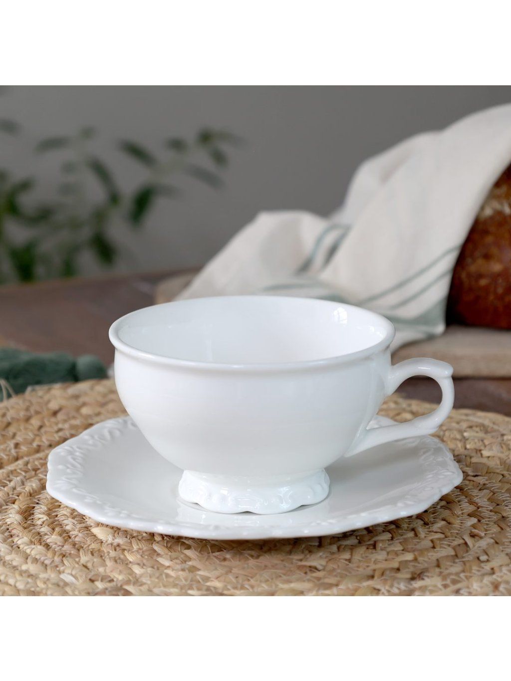 Šálka s podšálkou v elegantnej bielej farbe prináša do stolovania jemný a romantický nádych Provence štýlu.
