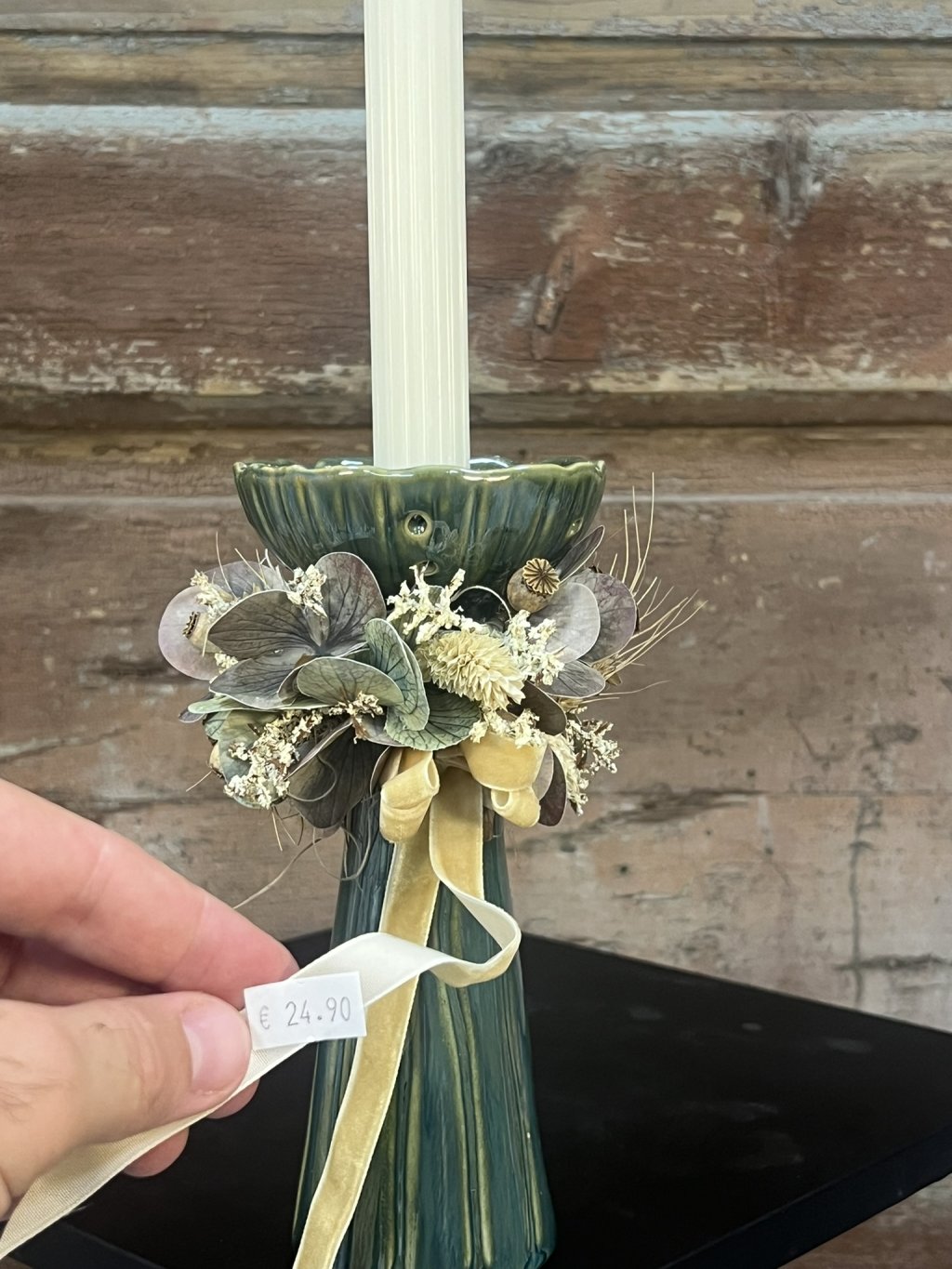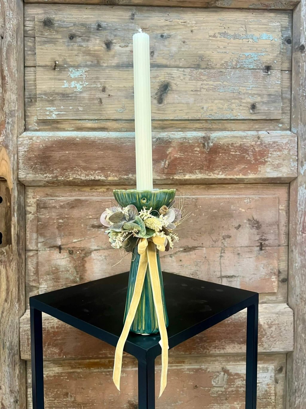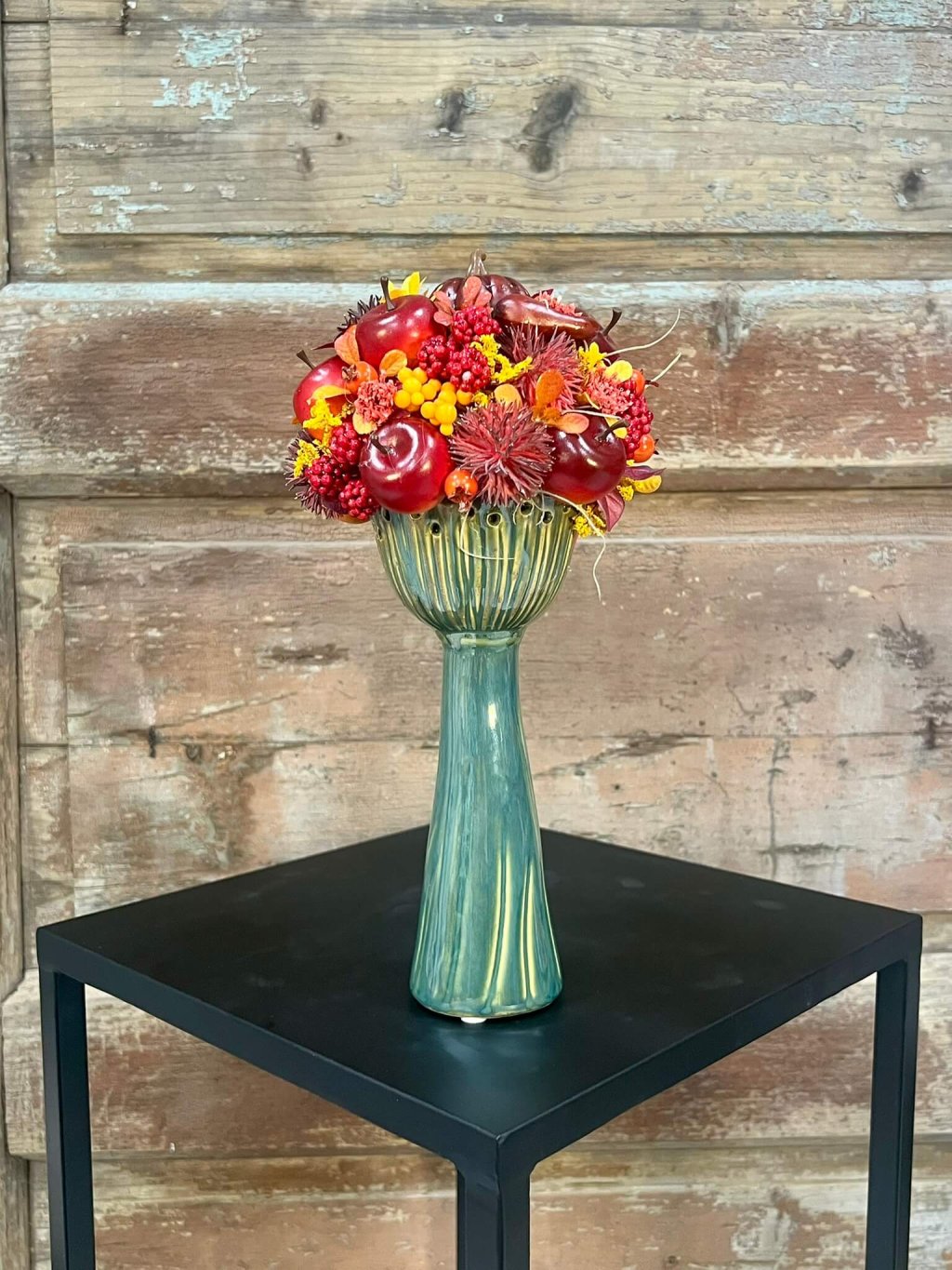 🍂 Kreatívne svietniky sú ukážkou, že dekorácia môže mať viacero podôb. Každý kúsok je originálne ozdobený – niektoré aranžmány dopĺňajú plody jesene, bobule, jablká a kvety v teplých tónoch, iný je ladený jemnejšie so sušenými listami a mašľou, ktorá dodáva romantický charakter. Základom sú keramické svietniky v zeleno-modrej glazúre, ktoré pôsobia elegantne a moderným dojmom.