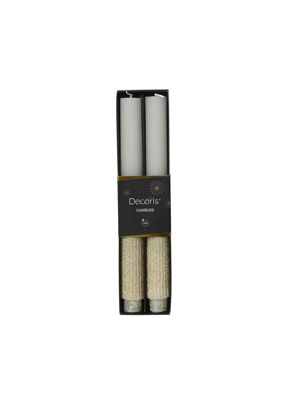 Tieto sviečky sú ideálnym spojením čistoty bielej farby a žiarivého zlatého akcentu – skvelo vyniknú pri slávnostnom stolovaní, v adventnom venci či ako elegantný darček.