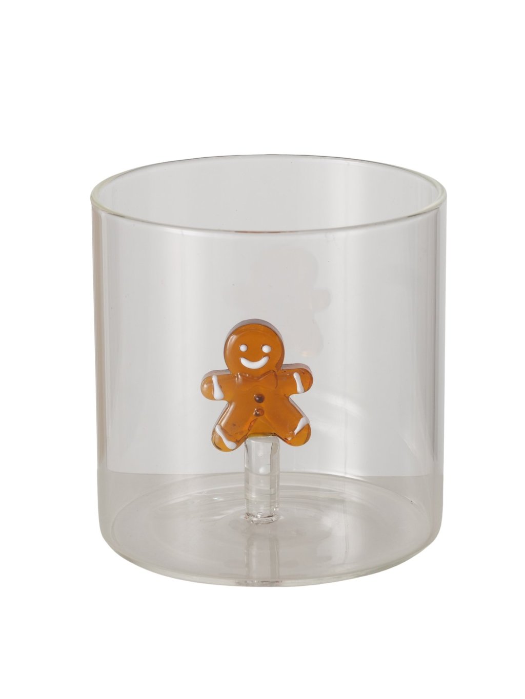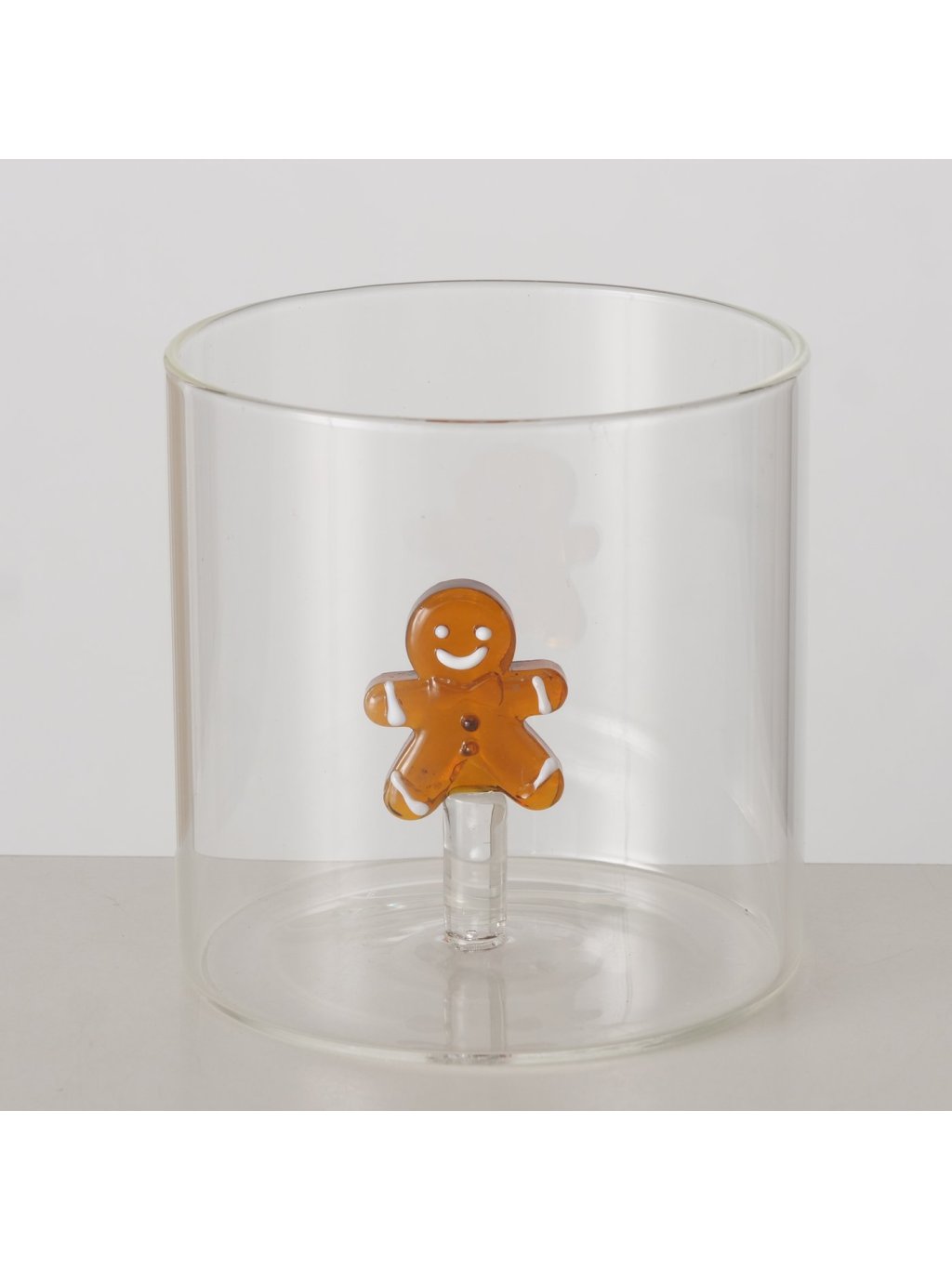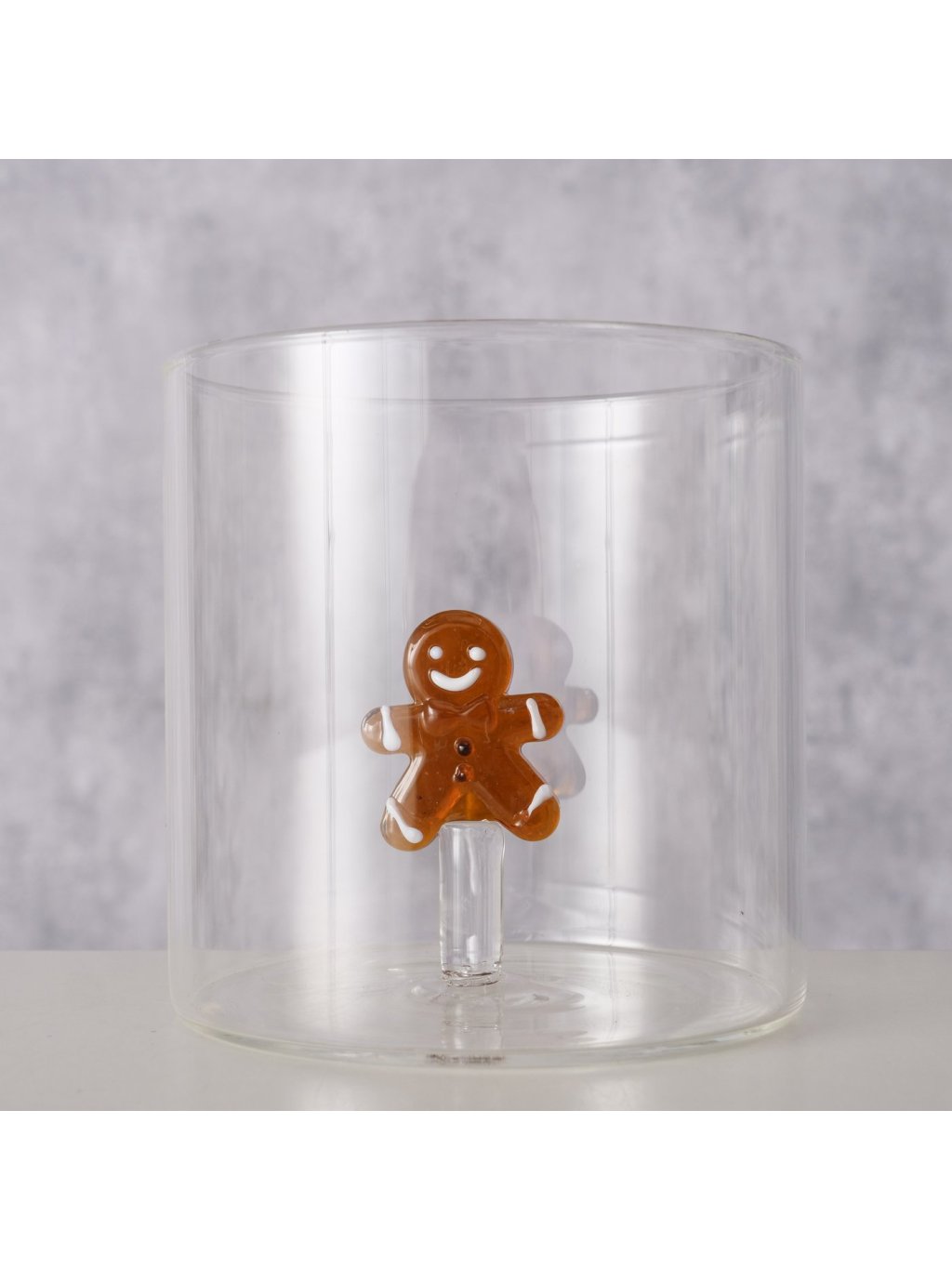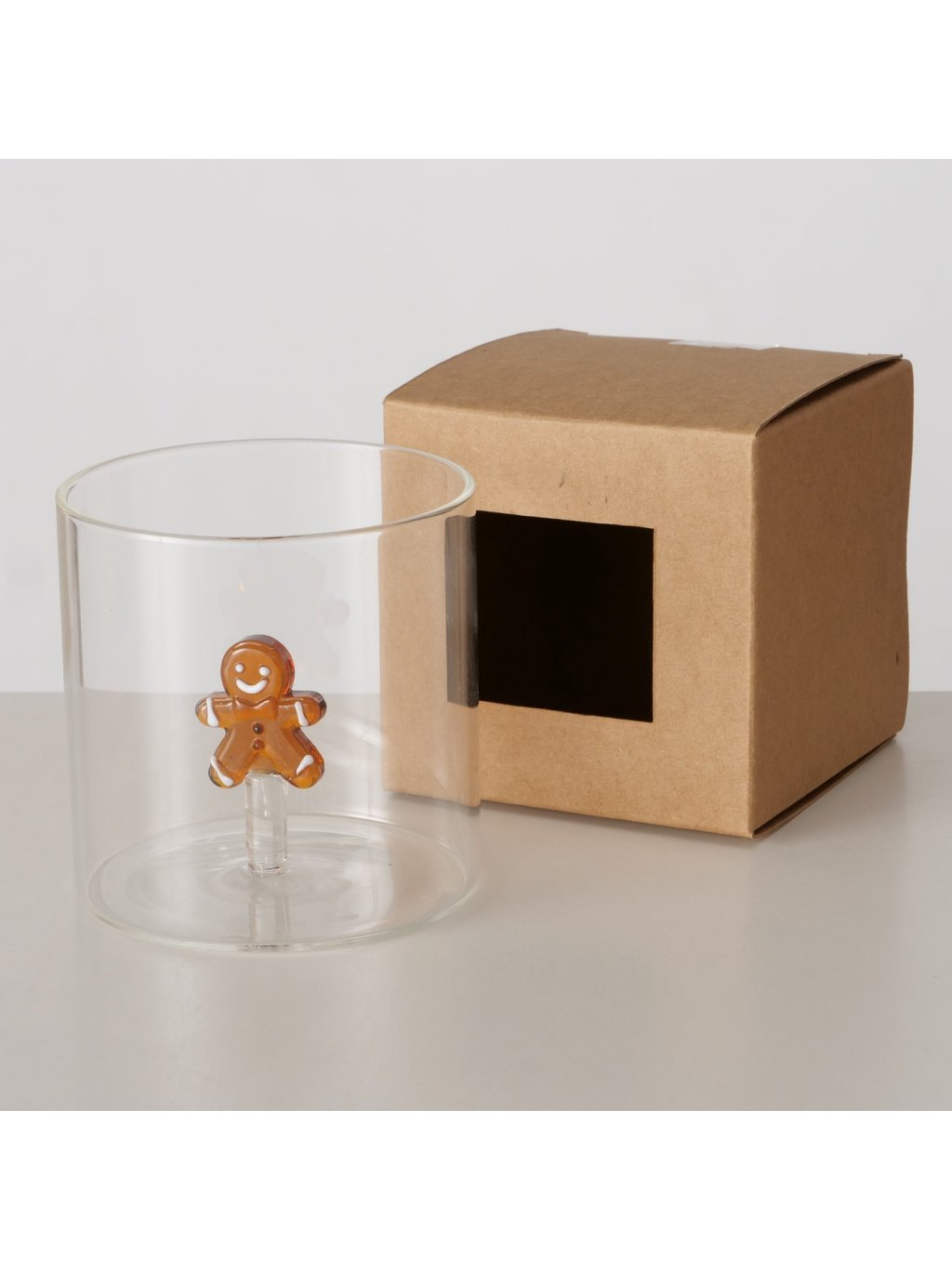 Každý pohár je ručne vyrobený tradičnou technikou skla, s vloženým 3D perníčkom vo vnútri, ktorý pôsobí, akoby sa na vás usmieval pri každom napití. Pohár má výšku 8cm a priemer 8cm – praktická veľkosť na obľúbený nápoj aj menšie dezerty. Hoci nie je vhodný do umývačky riadu, jeho originálny dizajn stojí za ručné umývanie. Transparentné sklo necháva vyniknúť obsah, zatiaľ čo hnedý perníček pridáva štipku hravej atmosféry.