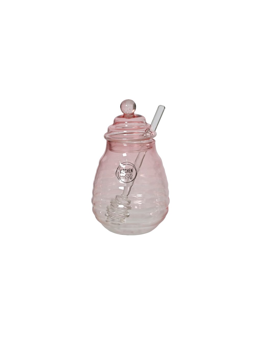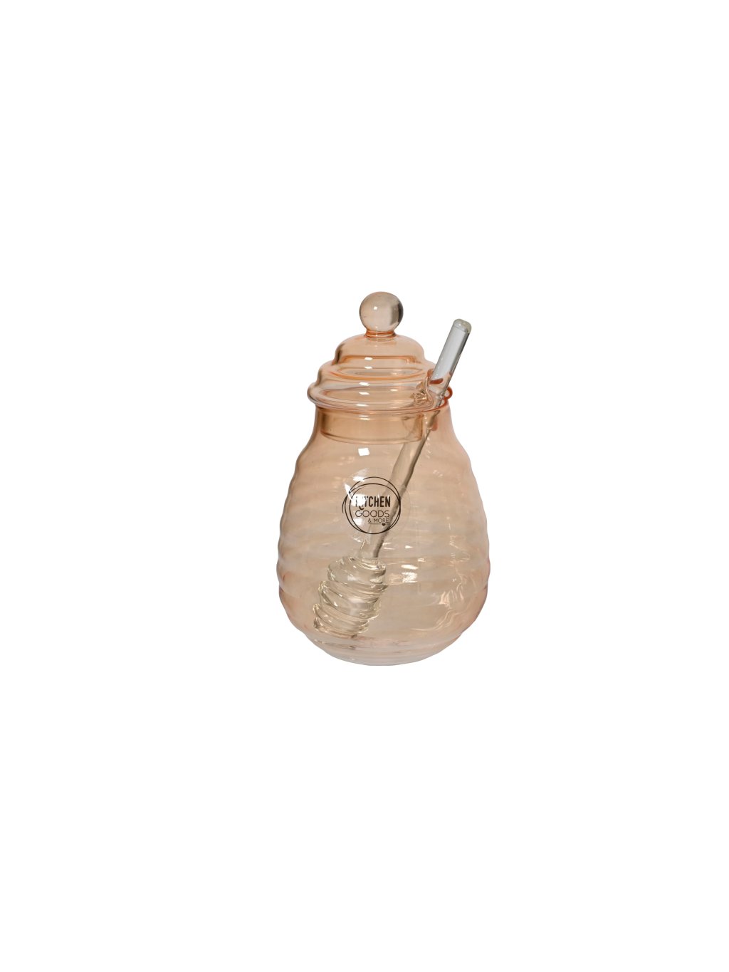 Nádoby sú vyrobené z číreho skla s jemným farebným nástrekom, ktorý necháva vyniknúť obsah, no zároveň dodáva dekoratívny efekt. Zaoblený, jemne rebrovaný tvar pôsobí mäkko a príjemne na pohľad. Vďaka kompaktnej veľkosti (15 cm) a sklenenému miešadlu sú ideálne na med a krásne vyniknú aj ako súčasť prestretého stola.