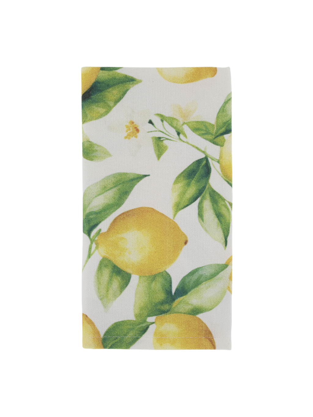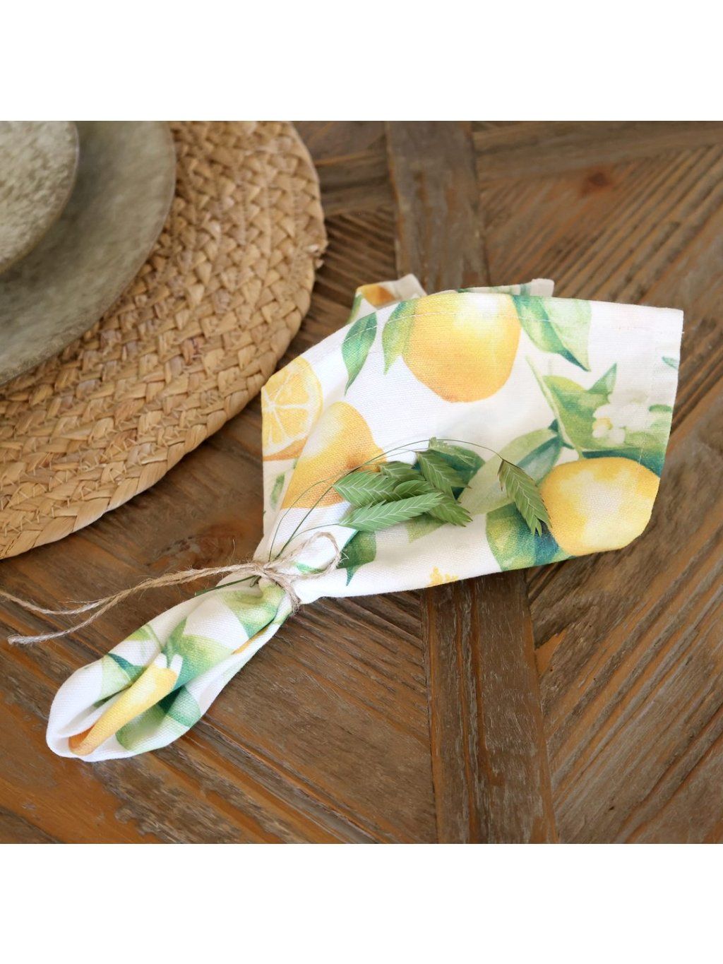 Obrúsok s jemným citrónovým vzorom vnesie na stôl ľahkosť a letnú atmosféru. Kombinácia sviežich žltých tónov a zelených listov pôsobí prirodzene a harmonicky, vďaka čomu sa hodí nielen na každodenné stolovanie, ale aj na víkendové brunch či záhradné posedenia.
