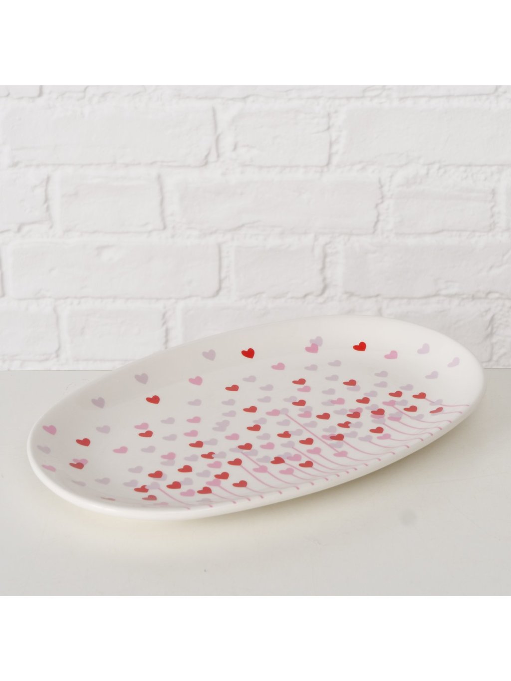 Podmanivá farebná paleta: Harmonická súhra bledoružovej, červenej a bielej farby vytvára romantickú atmosféru, ktorá oživí každý pokrm. Srdiečkové vzory decentne tancujú po povrchu misy, pričom ich intenzita a usporiadanie vyvolávajú pocit pohybu a radosti. Lesklý povrch nádherne odráža svetlo a dodáva mise žiarivý, sviatočný vzhľad.