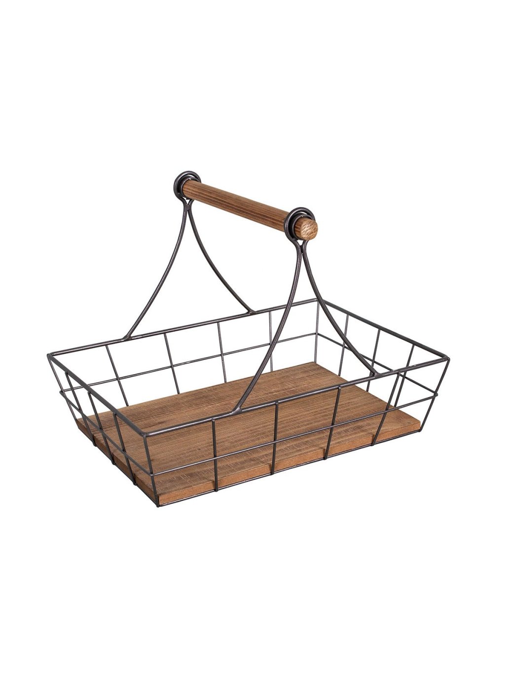 Dekoratívny kovový košík s dreveným dnom a rúčkou v rozmere 36×27,5×27,5 cm je praktický úložný doplnok na ovocie, pečivo či kuchynské dekorácie, ktorý zároveň zútulní interiér.