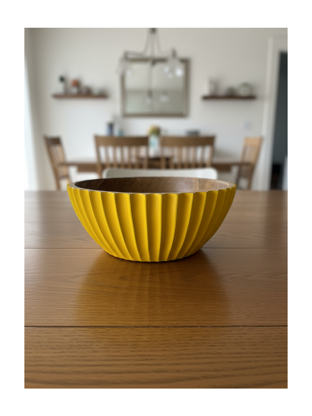 Výrazná drevená miska v žltej glazúre oživí každý stôl sviežou farbou. Vďaka kontrastu prírodného dreva a sýteho odtieňa pôsobí moderne a zároveň útulne.