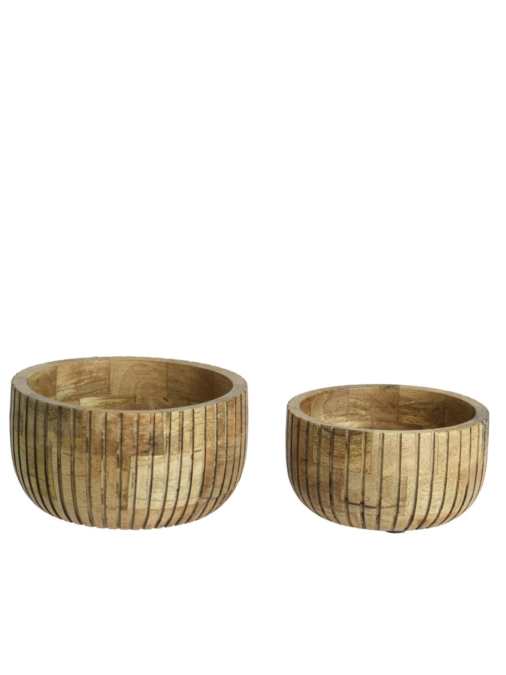 Misky sú vyrobené z prírodného mangového dreva, ktoré je známe svojou pevnosťou a krásnou kresbou. Ručné spracovanie a prirodzený povrch robia z každého kusu originál – jemné odtiene hnedej a štruktúra dreva dodávajú miskám autentický charakter.