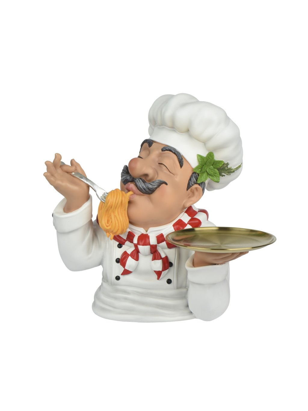 Táto veselá figúrka šéfkuchára okamžite vyčarí úsmev 😊 S pôžitkom ochutnávajúci cestoviny a s tanierom v ruke pôsobí hravo, štýlovo a trochu taliansky. Perfektný doplnok do kuchyne, jedálne alebo ako originálny darček pre milovníkov varenia 🍽️❤️