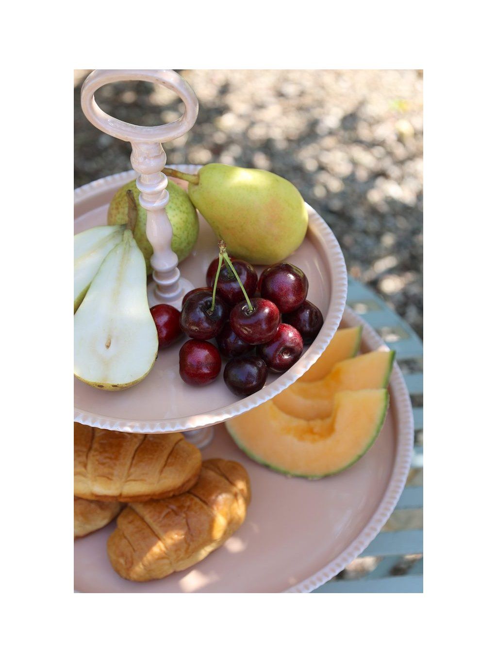 Jemný ružový odtieň pôsobí elegantne a ľahko sa kombinuje s rôznym riadom aj textíliami v kuchyni či jedálni. Praktické držadlo v hornej časti umožňuje jednoduché prenášanie. Vďaka úprave vhodnej pre styk s potravinami je etažér pripravený na každodenné používanie.