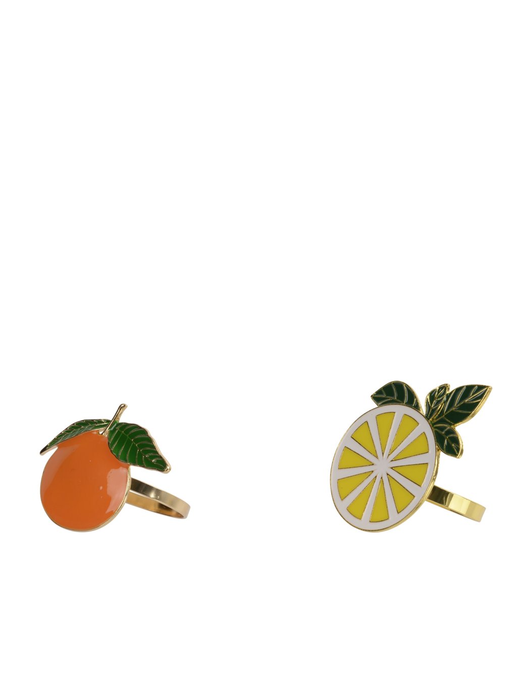 Každý krúžok je malým dizajnovým akcentom – plastický tvar pomaranča či citróna pôsobí hravo, no vďaka jemnému spracovaniu nie detinsky. Zelený kovový klip pridáva kontrast a zároveň praktickosť – servítka drží presne tam, kde má, bez zbytočného upravovania. Materiál je pevný, príjemný na dotyk a vhodný na opakované použitie, takže krúžky využijete nielen pri slávnostnom stole, ale aj pri bežnom rodinnom stolovaní.