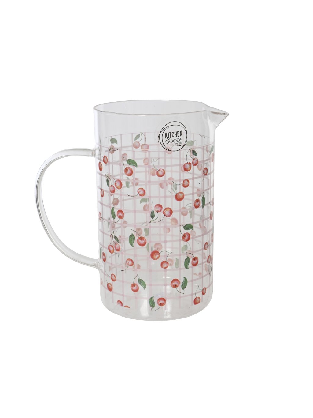 Dekor tvorí jemný károvaný vzor doplnený čerešňovým motívom v tlmených farbách. Vzor je výrazný, ale neprekrýva samotnú funkciu džbánu. Vďaka neutrálnej farebnosti sa dá kombinovať s jednofarebným porcelánom, sklom aj s ďalšími kúskami s čerešňovým alebo vidieckym motívom.