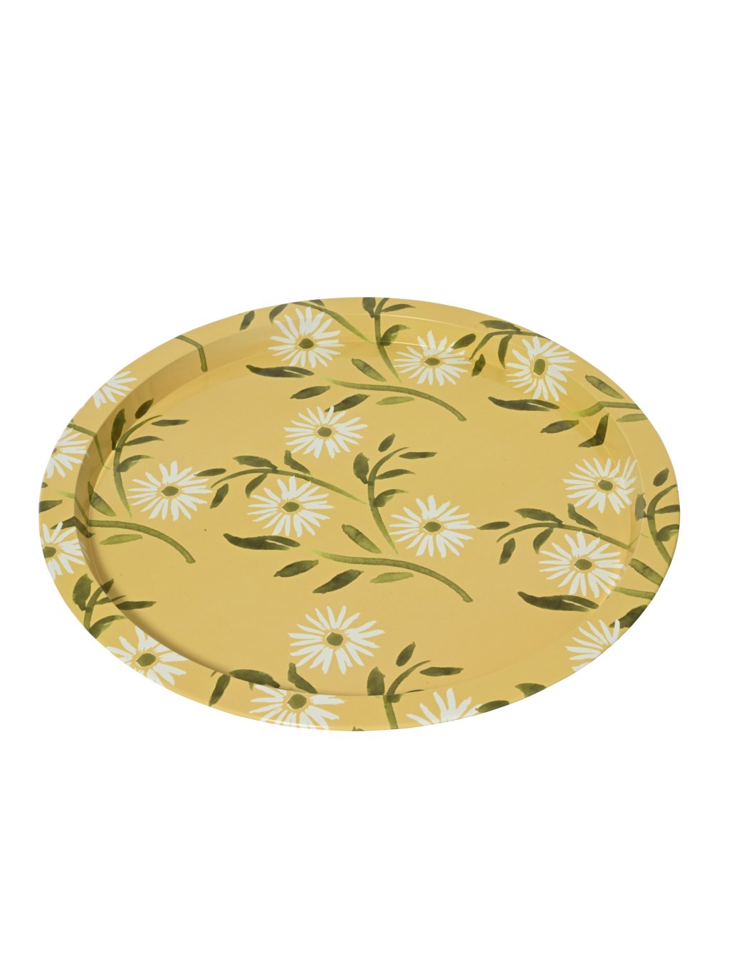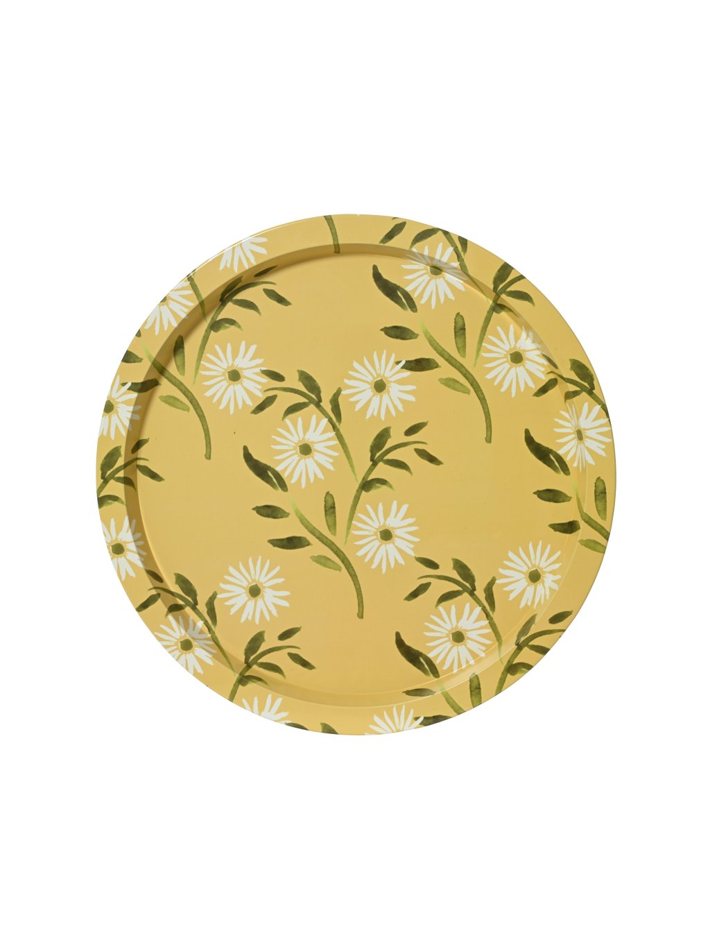Tanier je vyrobený z ľahkého kovu s lesklým povrchom, vďaka čomu pôsobí sviežo a upravene. Priemer 32cm z neho robí ideálny dekoračný prvok na stôl, komodu či otvorenú poličku. Kvetinový motív v jemných tónoch krásne ladí s prírodnými materiálmi aj jednoduchým moderným interiérom 🌿