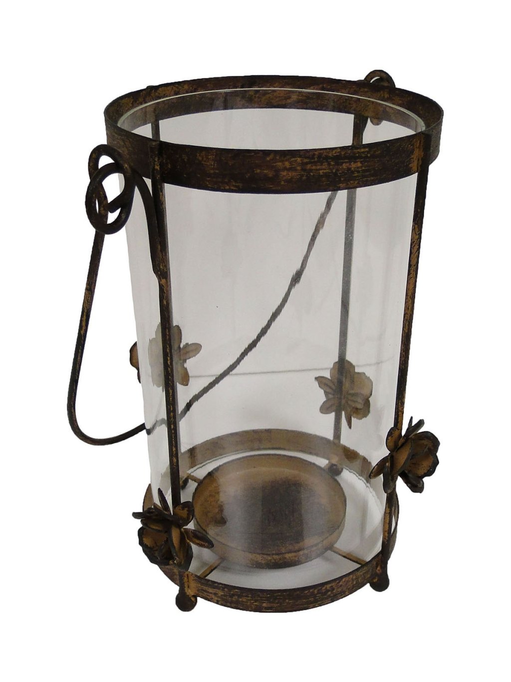 Antický svietnik na čajovú sviečku s výškou 22 cm a priemerom 13 cm dodá domovu romantickú atmosféru. Kovový rám so sklenenou vložkou pôsobí elegantne a bezpečne ukryje plamienok sviečky. Tento dekoratívny svietnik je ideálny na večerné posedenie aj ako originálna ozdoba poličky či stolíka.