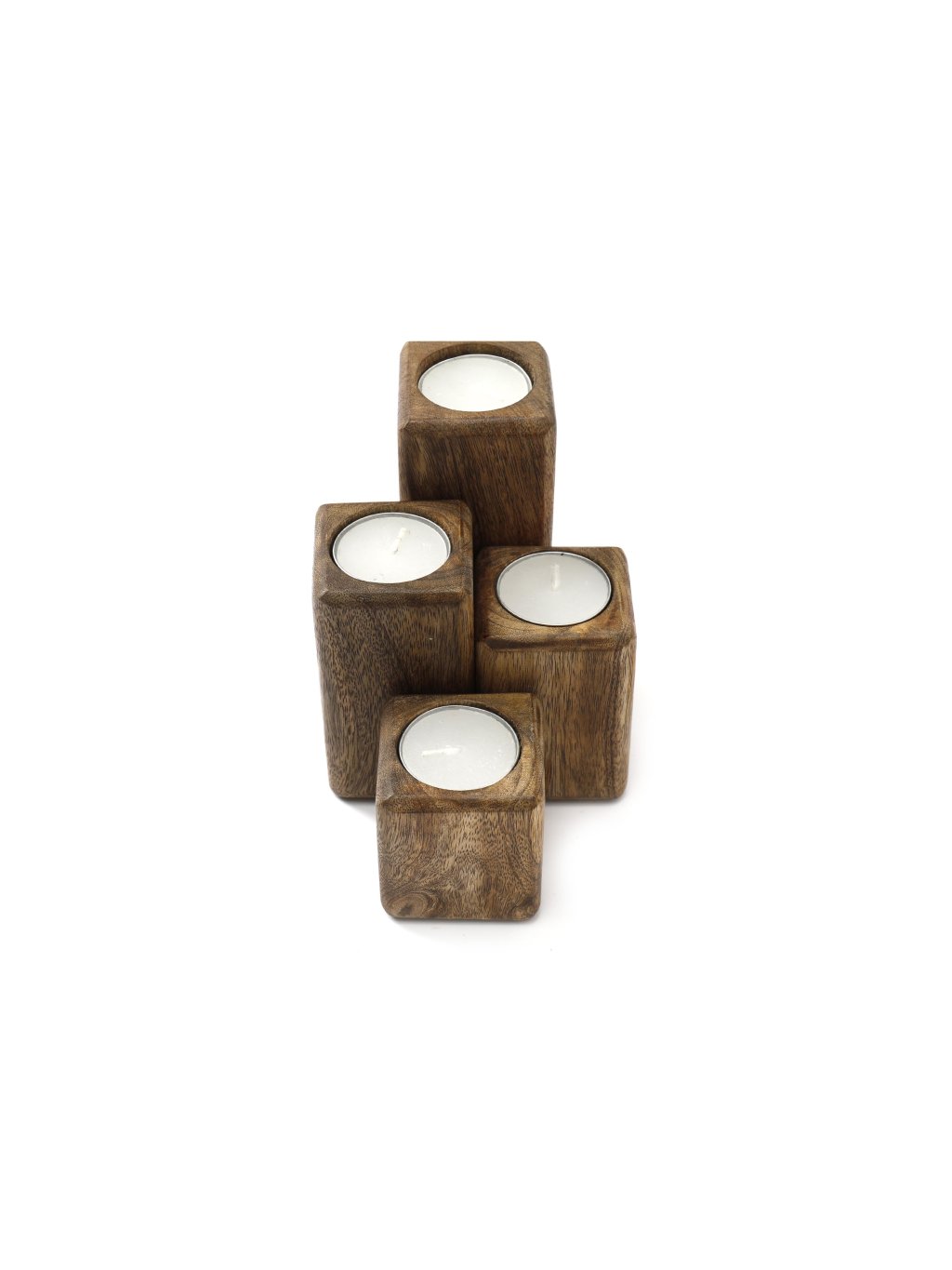 Set 4 drevených svietnikov na čajovú sviečku