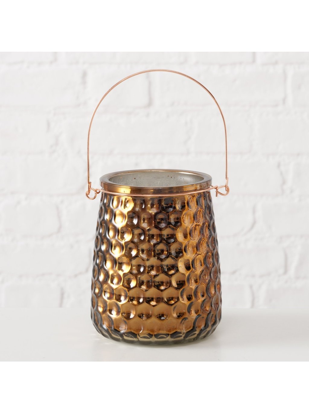 Svietnik Mello je vytvorený z kombinácie lakovaného železa a skla, čo mu dodáva sofistikovaný vzhľad. Vďaka svojmu jednoduchému okrúhlemu tvaru a zaujímavému lesklému povrchu v jemných hnedých tónoch sa stane ideálnym doplnkom pre váš interiér. Jeho kovový povrch s jemnými embosovanými detailmi krásne odráža svetlo a vytvára príjemnú atmosféru.