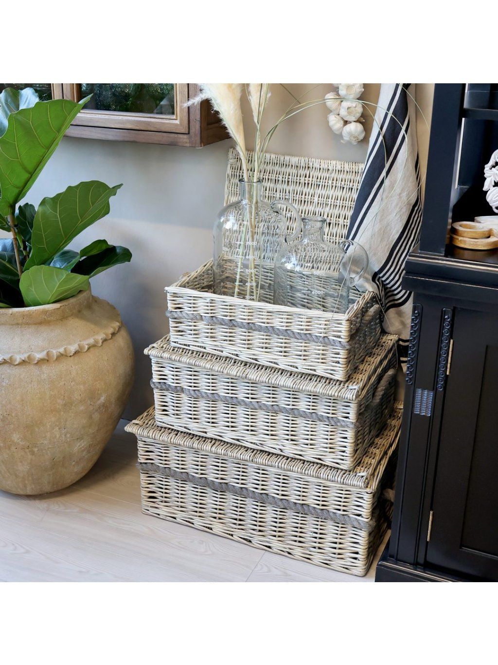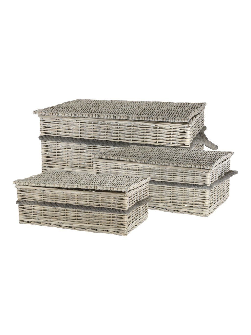 Ručne pletený prútený kôš s vekom na prehľadné a uzatvorené uskladnenie. Vhodný do interiéru na rôzne drobnosti.