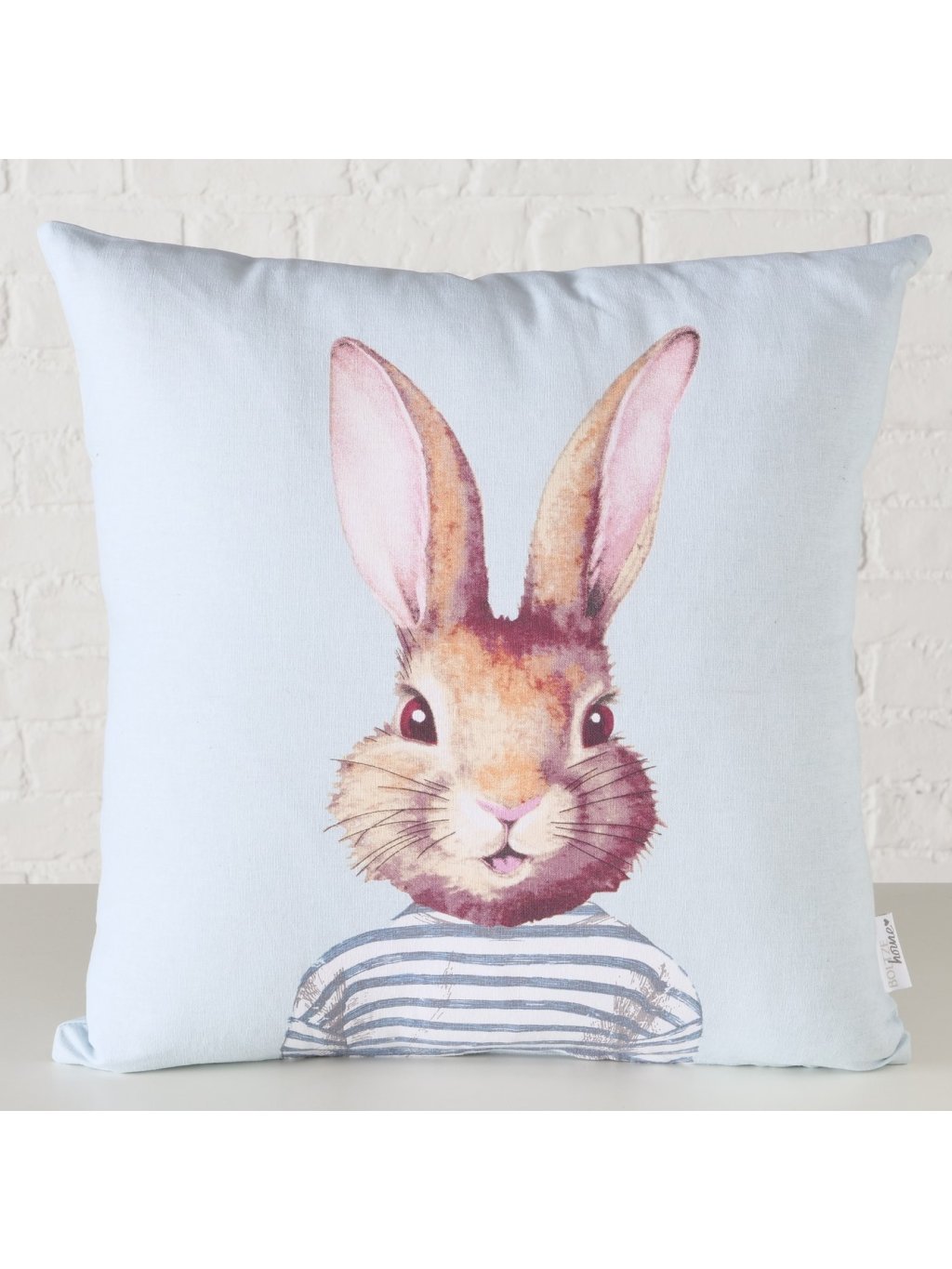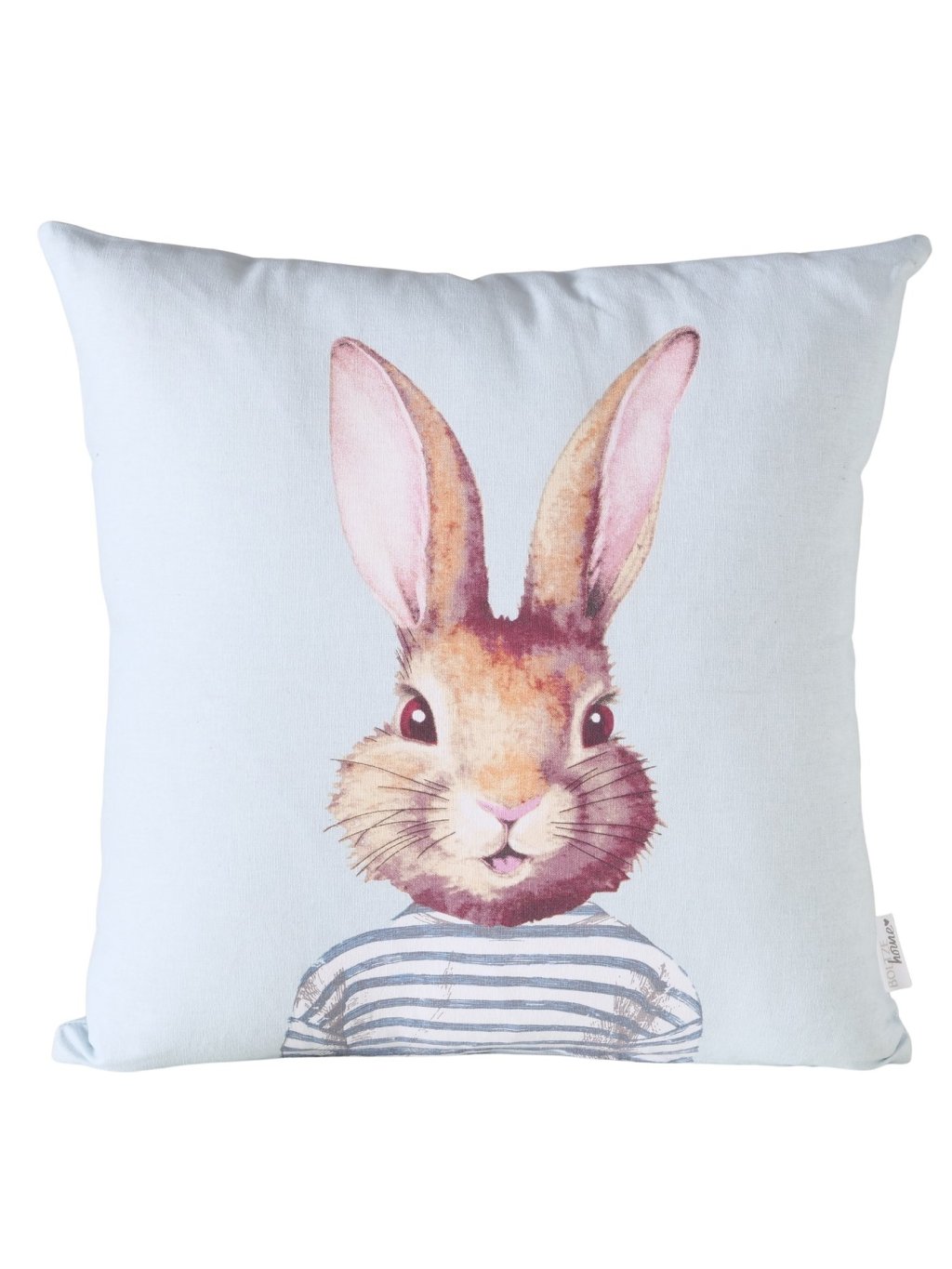 Jemný úsmev, ktorý rozjasní celý priestor. Vankúš Jonas s nežným motívom zajačika pôsobí pokojne, hravo a zároveň veľmi vkusne. Svetlomodrý podklad v kombinácii s ilustráciou v tlmených tónoch vytvára pocit pohody, ktorý si zamilujete na prvý pohľad. 🐰🤍