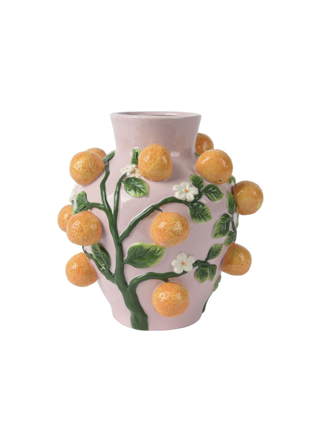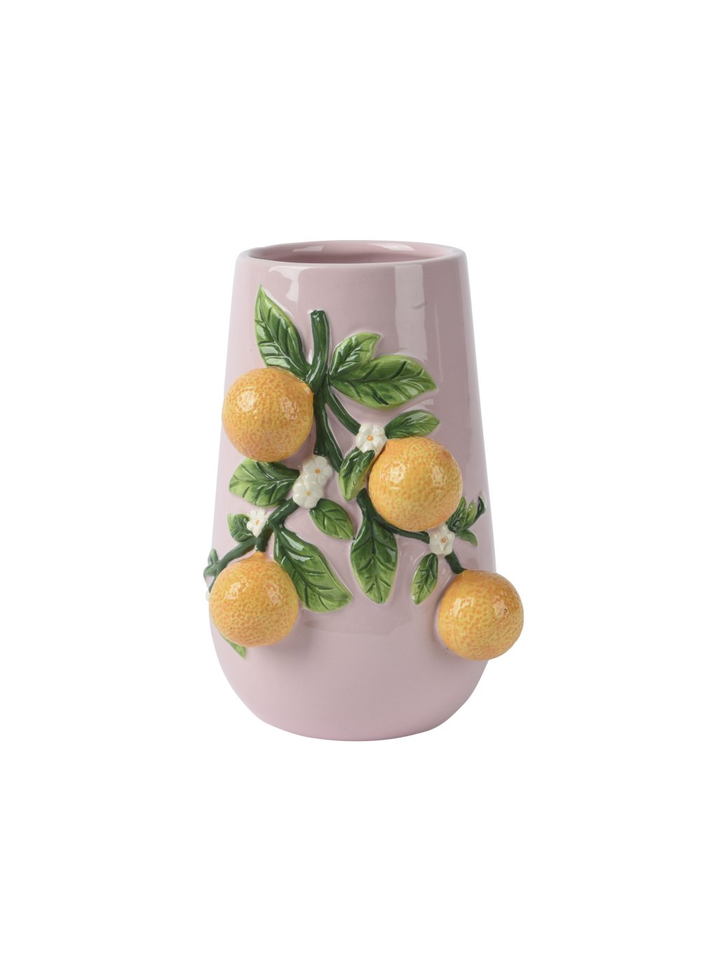 Táto váza prináša do interiéru sviežosť, jemnosť a hravý akcent. Okrúhly tvar pôsobí harmonicky a plastické ovocné detaily dodávajú váze charakter.