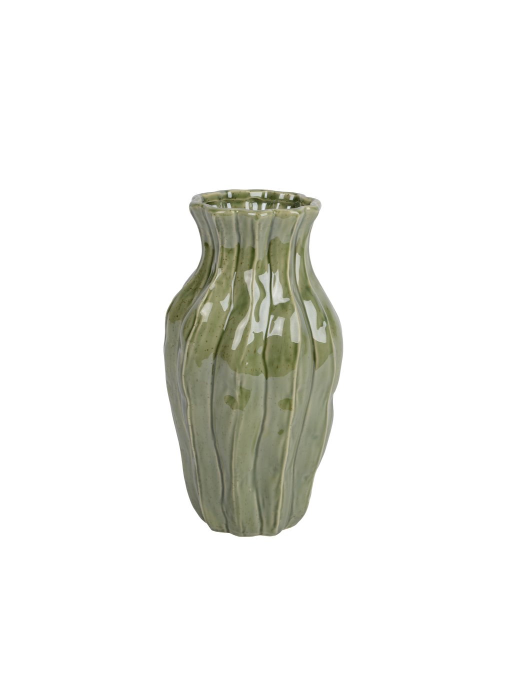 Táto váza pôsobí nenápadne, no premyslene. Zelený porcelán s vlnitým povrchom pridáva priestoru mäkkosť a prirodzený rytmus.