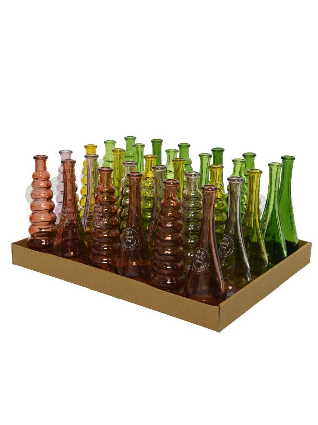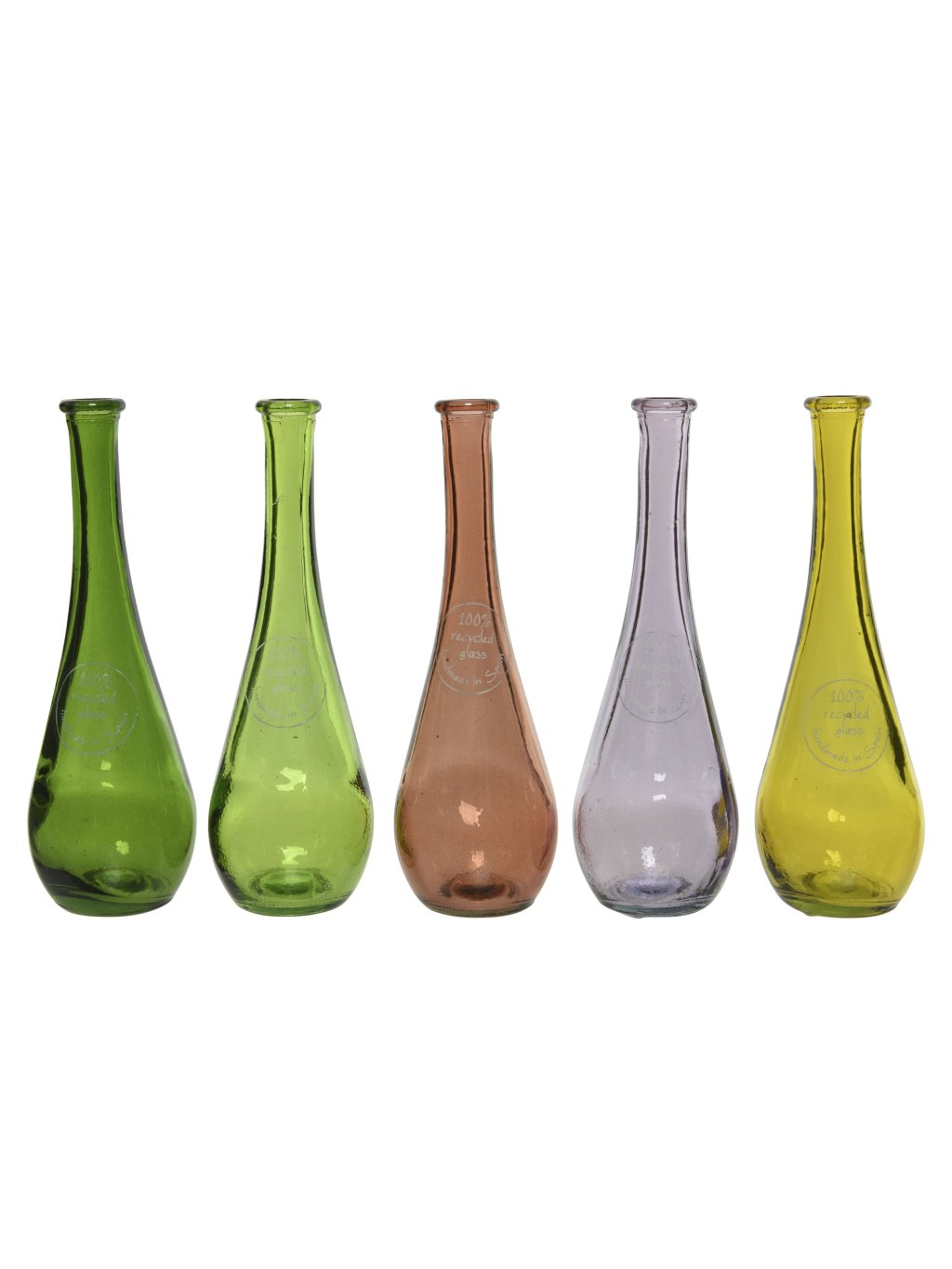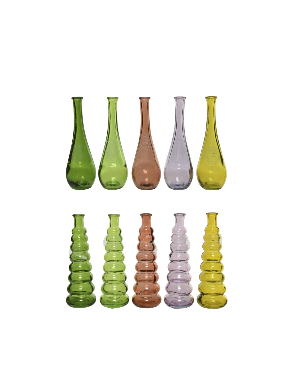 Vázičky sú vyrobené zo 100 % recyklovaného skla v Španielsku, čo im dáva autentický charakter aj jemné rozdiely v tvare a odtieni. Rôzne siluety a mäkké farby pôsobia hravo, no stále vkusne. Vďaka výške 18 cm a úzkemu profilu sú ideálne na jeden kvet, steblo či vetvičku – krásne samostatne aj v skupine.