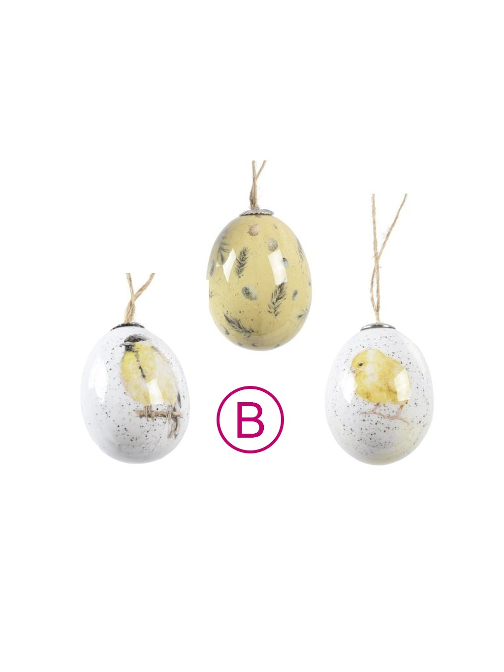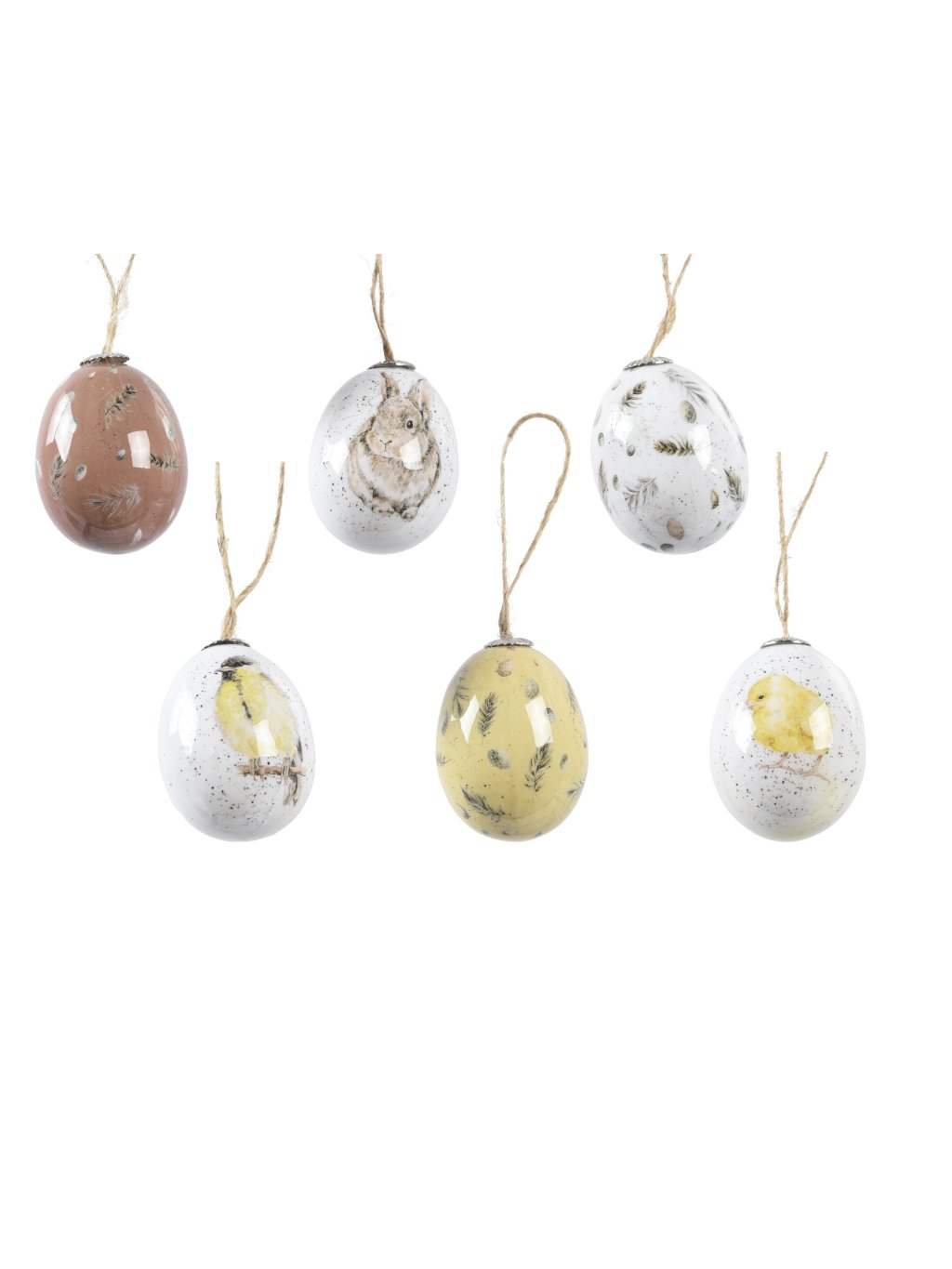 Kraslice sú vyrobené z ľahkého penového materiálu s lesklým povrchom, ktorý zvýrazňuje jemné jarné vzory. Prírodný jutový záves im dodáva nenútený vidiecky nádych a vďaka rozmeru 9 cm sa krásne hodia na vetvičky, vence aj menšie aranžmány. Ideálne pre tých, ktorí majú radi dekorácie s príbehom a ľahkosťou.
