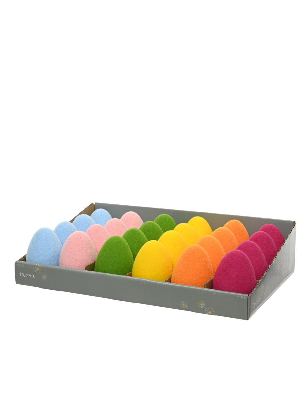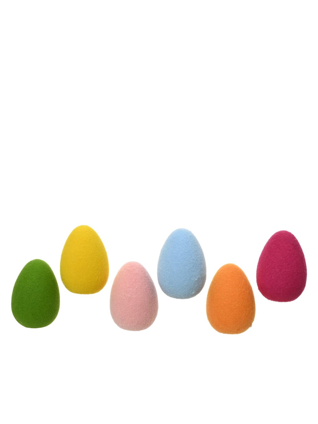 Jemný zamatový (flokovaný) povrch pôsobí príjemne na dotyk a dodáva vajíčkam mäkký, elegantný vzhľad. Vďaka sýtym farbám krásne vyniknú samostatne aj ako súčasť jarnej či veľkonočnej dekorácie.