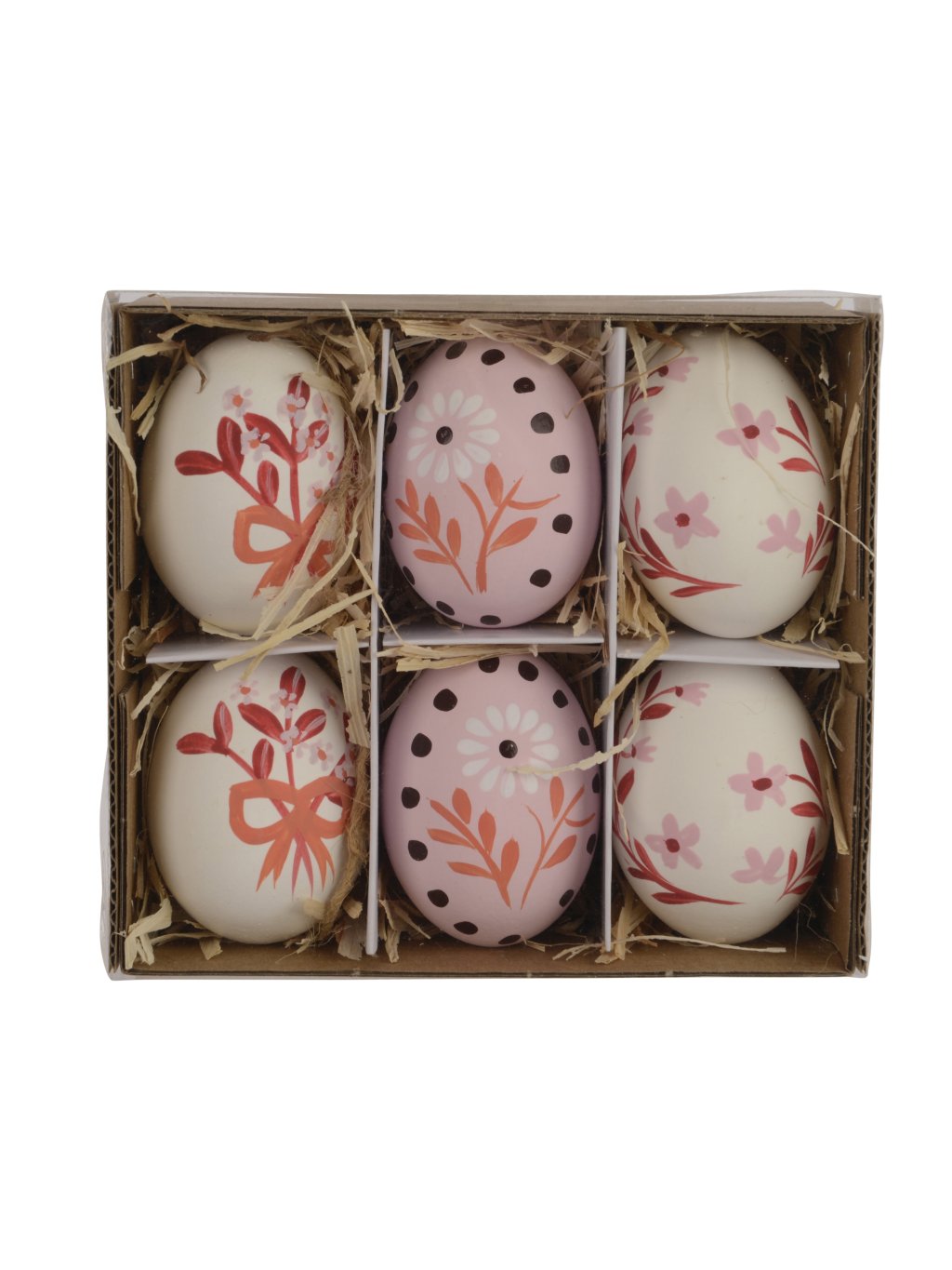 Sú vyrobené z pravých slepačích vajec a uložené v dekoratívnom balení so slamou, vďaka čomu sú vhodné aj ako milý veľkonočný darček. Ideálne na ozdobenie stola, poličky či jarného aranžmánu.