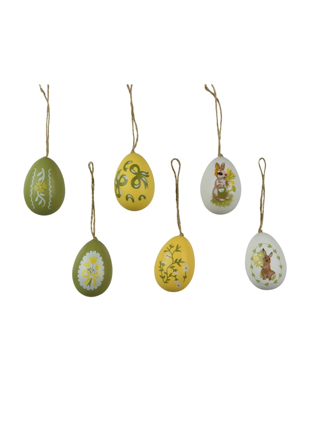 Kraslice sú vyrobené z ľahkej peny, doplnené jutovou šnúrkou, takže ich jednoducho zavesíte presne tam, kde chcete jar cítiť najviac. Sú ideálne na rýchle, ale efektne pôsobiace jarné doladenie interiéru 💛