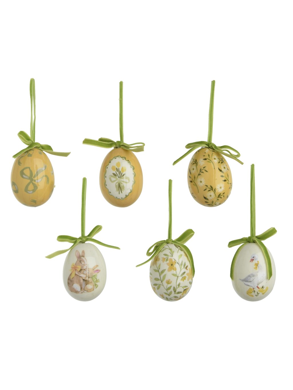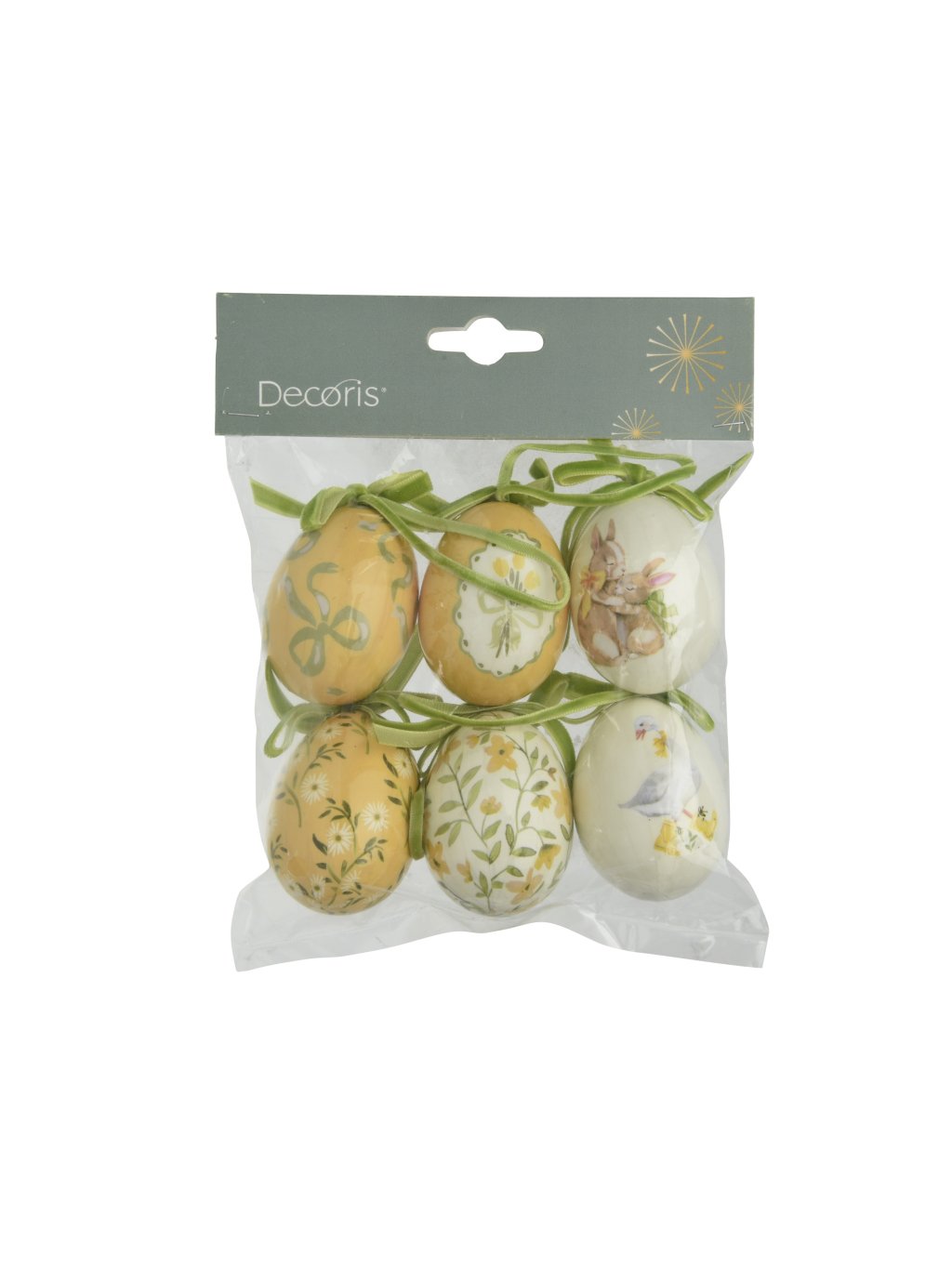 Každá kraslica má vlastný vzor v jarných tónoch, doplnený zelenou zamatovou stužkou, vďaka ktorej ich jednoducho zavesíte na vetvičky, veniec či do okna 🌿✨ Sú vyrobené z ľahkej peny, takže sa s nimi pracuje úplne bez starostí.