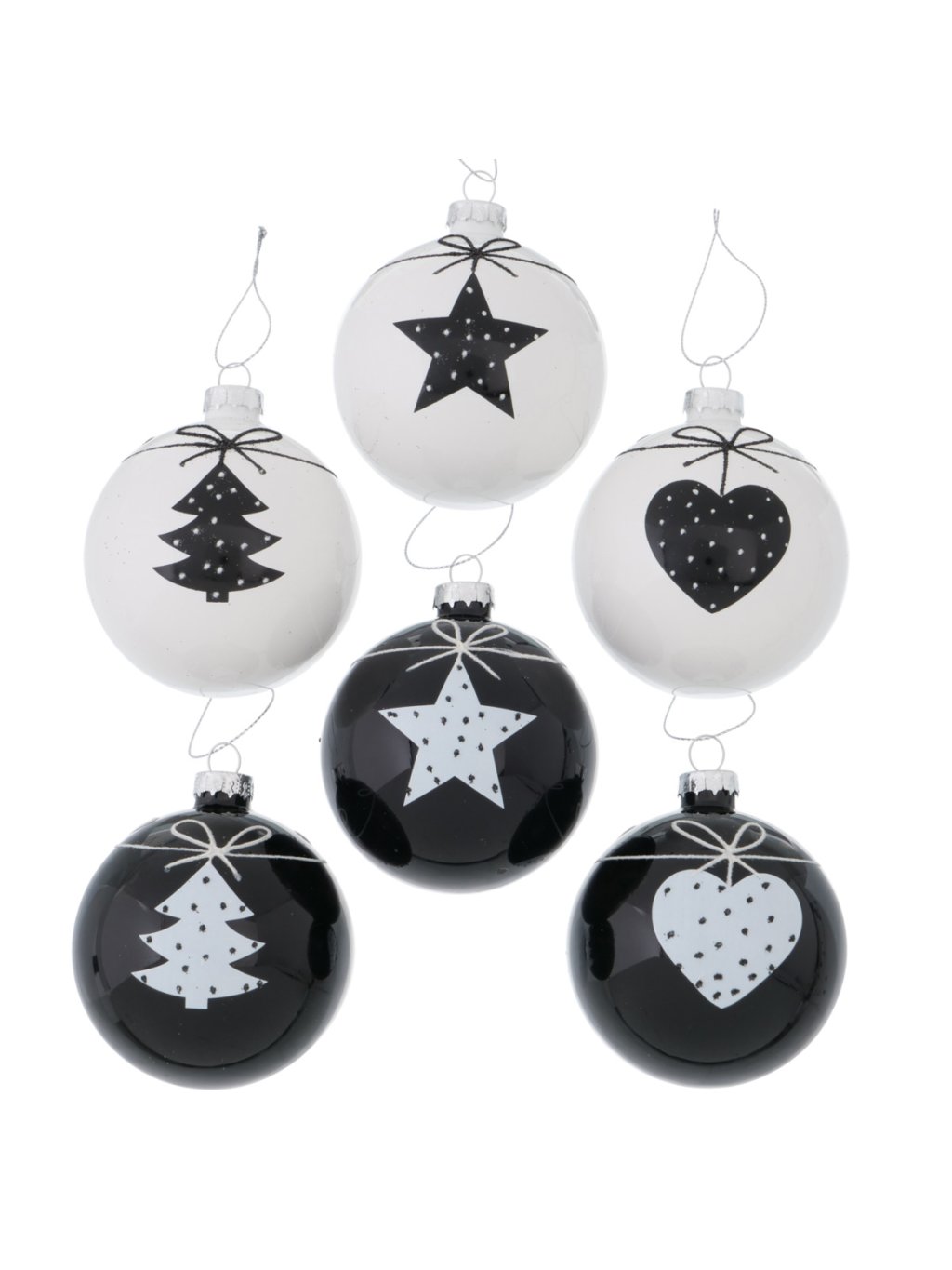 Vianočná guľa Gerdi - 3 kusy v čierno-bielom prevedení
