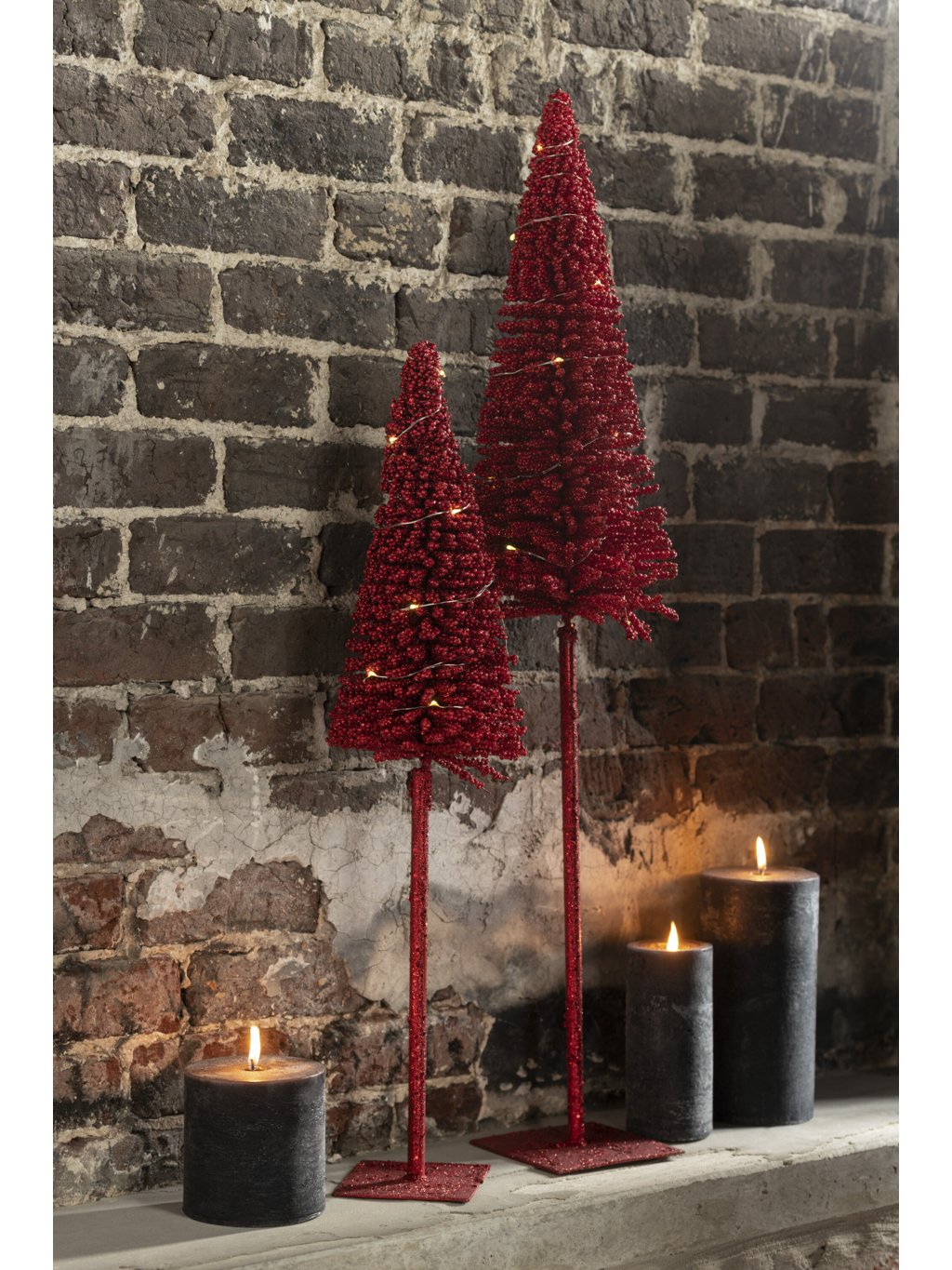 Produkt Vianočný stromček z bobúľ s LED má 2 varianty, ktoré majú rozmery:Menší: Dĺžka:13 cm, Šírka:13 cm, Výška:58 cm