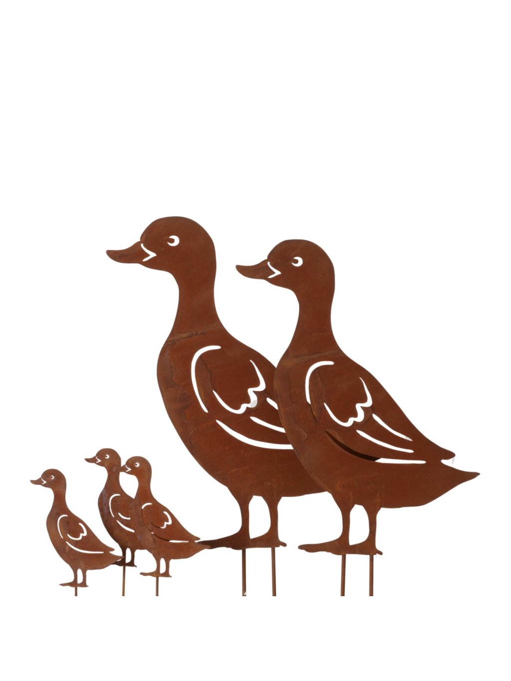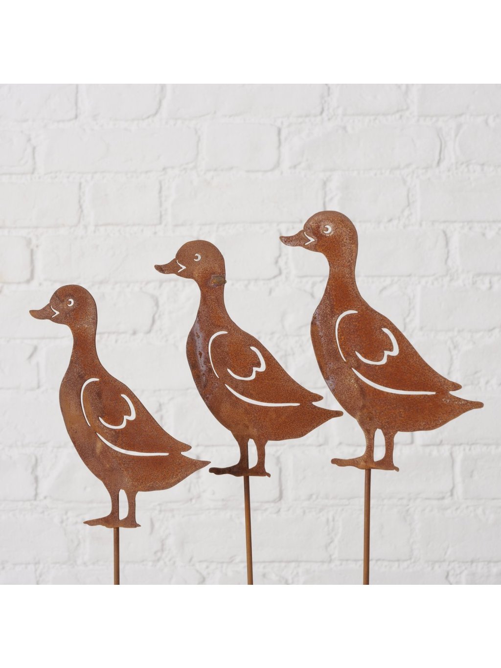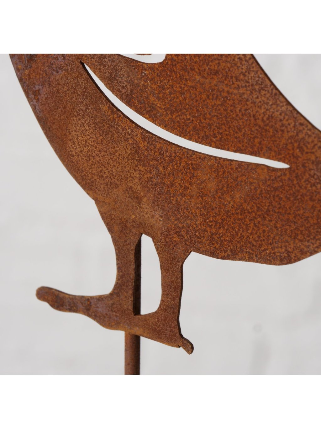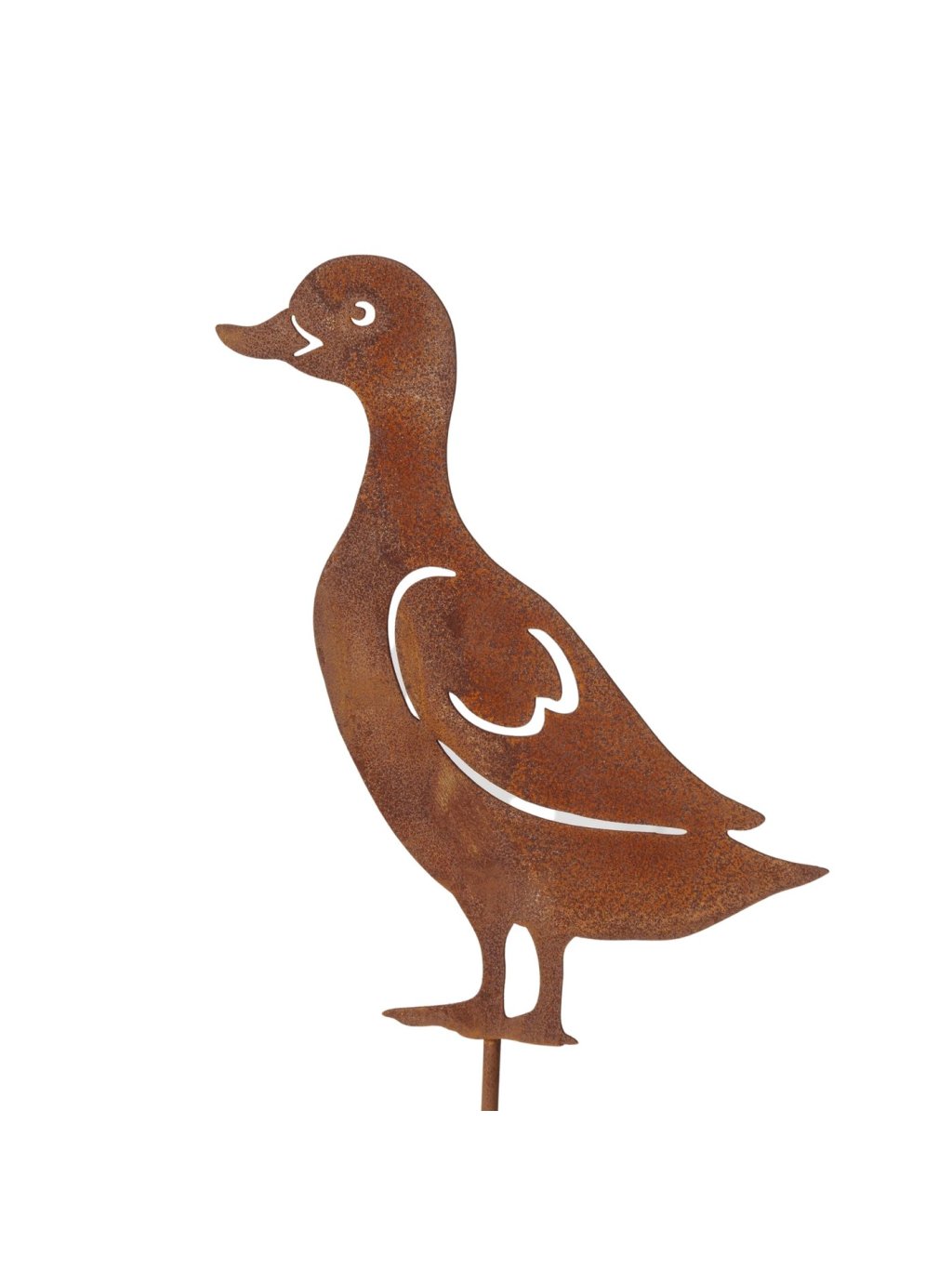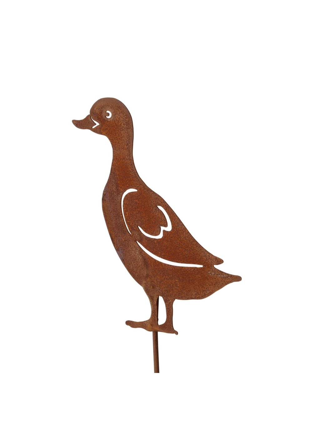Tento ručne vyrábaný kovový zápich v tvare kačky je vyrobený zo železa s prirodzenou hrdzavou patinou, ktorá mu dodáva autentický industriálny vzhľad. Povrch je zámerne surový, bez dodatočného lakovania – práve vďaka tomu pôsobí Adelheid prirodzene a krásne zapadne do exteriéru.