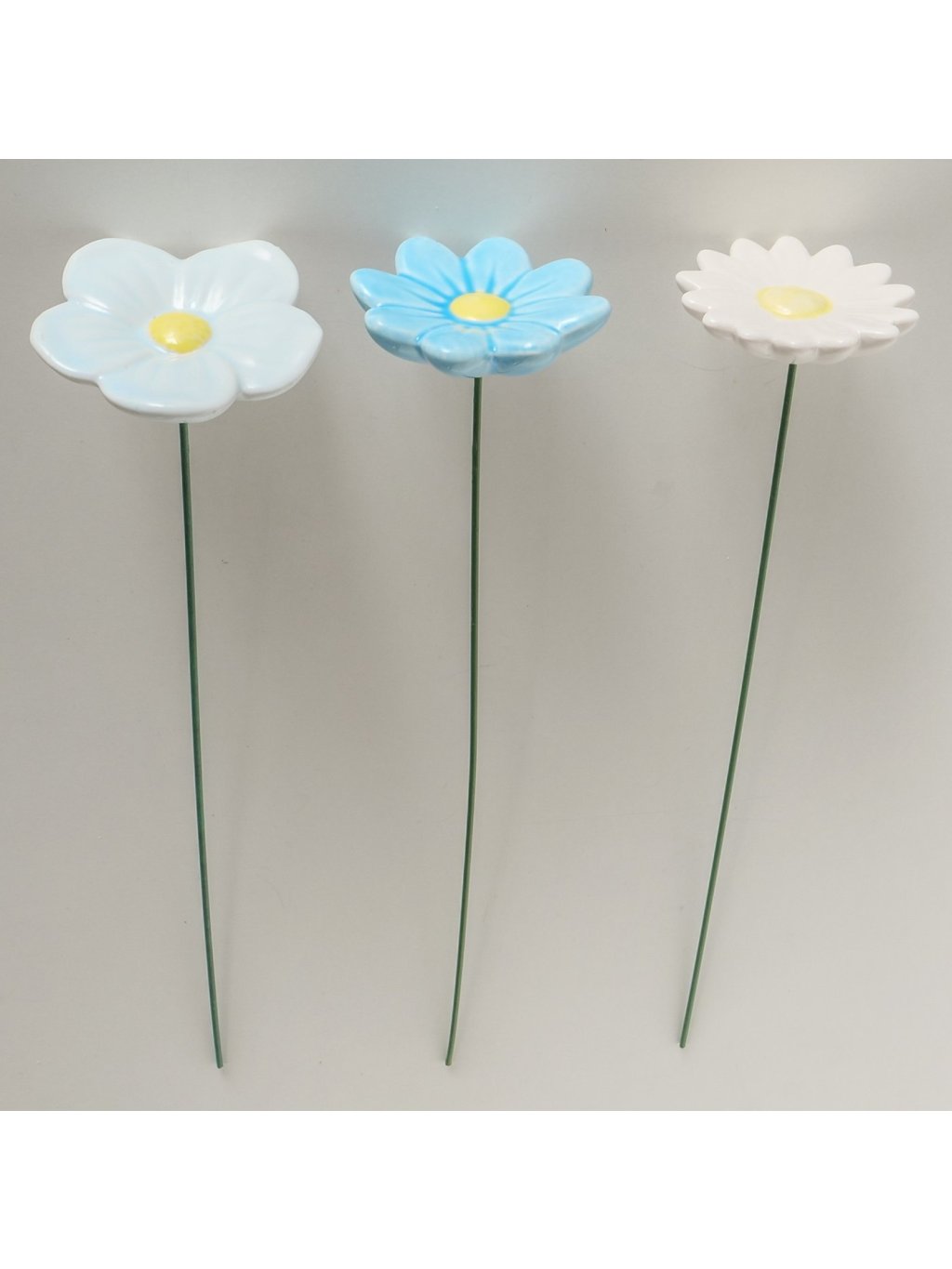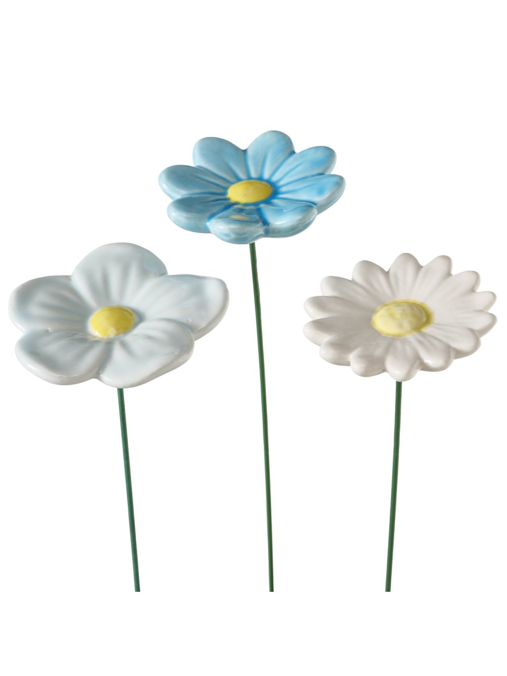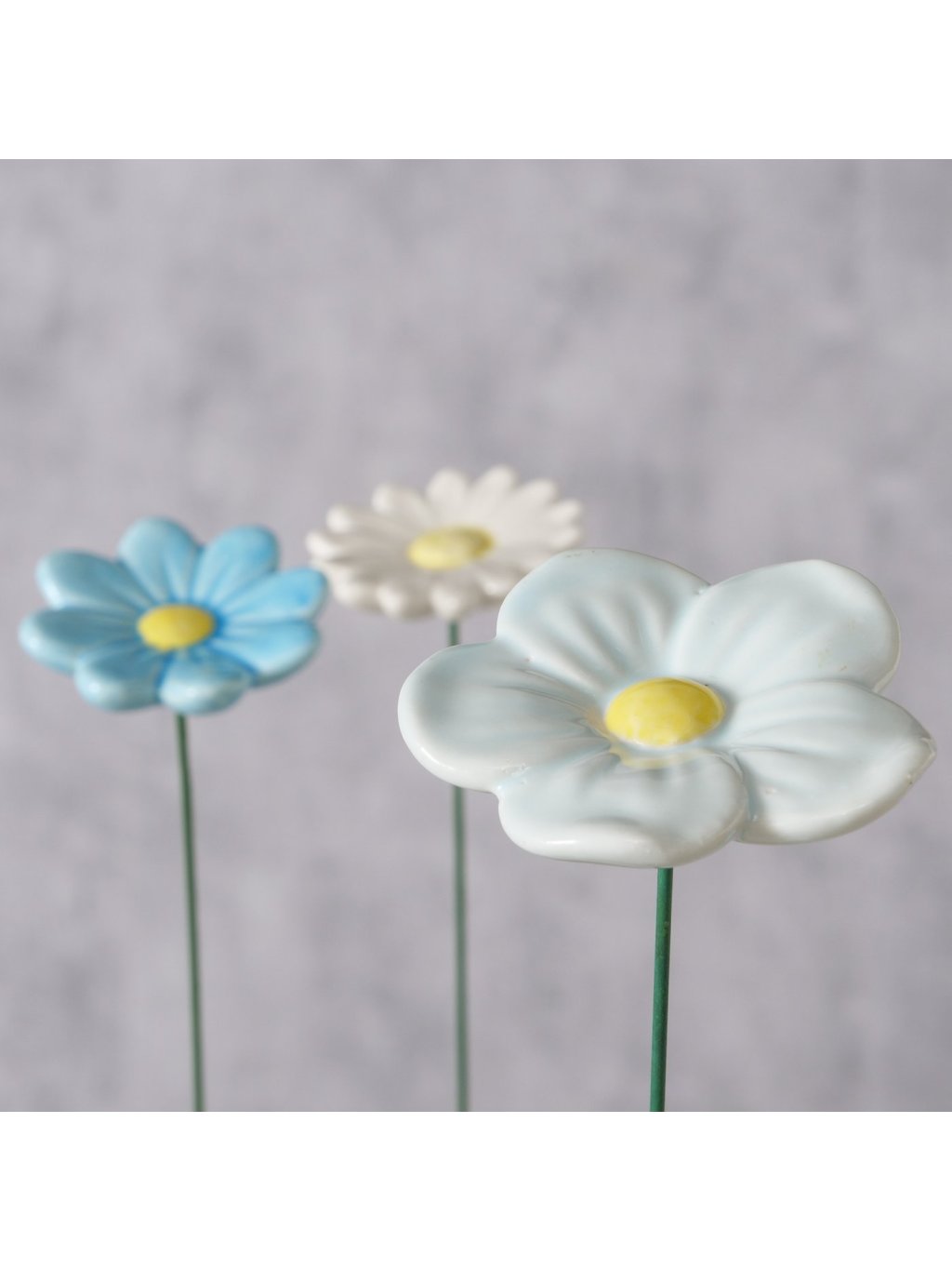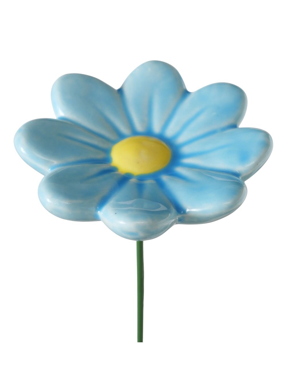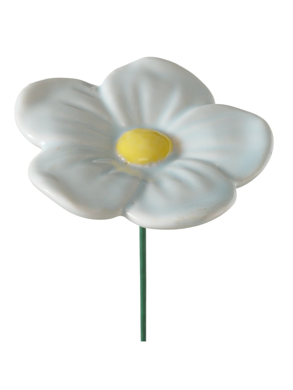 Kvet je vyrobený z glazovanej keramiky (earthenware), ktorá mu dodáva hladký povrch a príjemný lesk. Farebné prevedenie v odtieňoch modrej, svetlomodrej a bielej so žltým stredom pôsobí sviežo a prirodzene – presne ako prvé jarné kvety. Vďaka viacfarebnému dizajnu sa krásne kombinuje s kvitnúcimi rastlinami aj zelenými bylinkami.