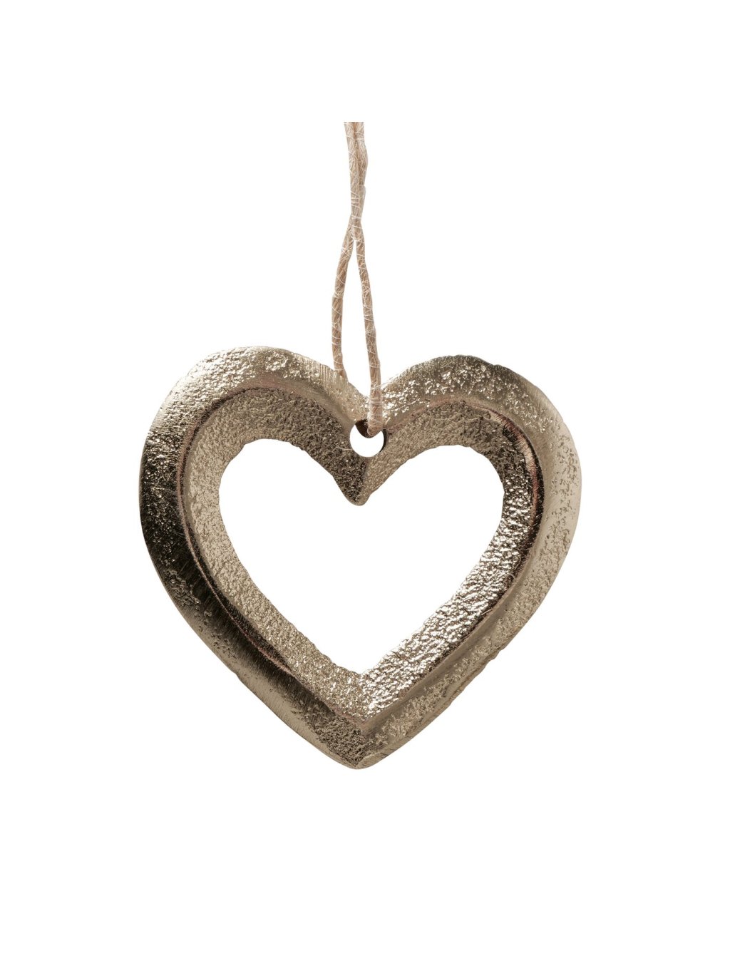 Závesné srdiečko Hanina je vyrobené z hliníka s lesklou zlatou povrchovou úpravou a má otvorený tvar, vďaka ktorému nepôsobí ťažko, ale skôr vzdušne a čisto.