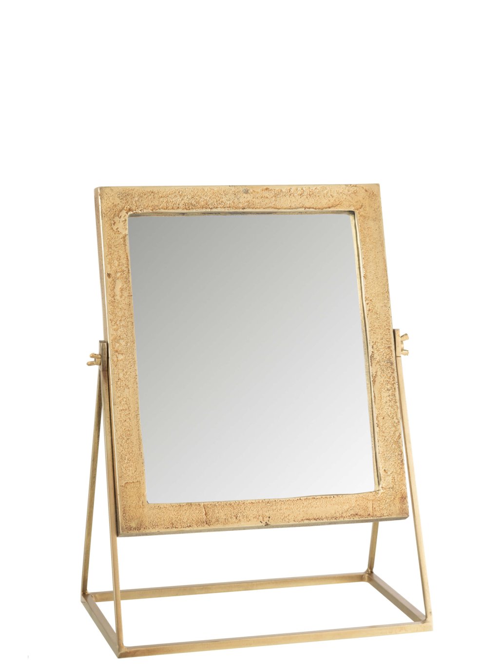 Zrkadlo s rozmermi 34 × 20 × 47 cm ponúka ideálnu veľkosť na každodenné líčenie alebo úpravu účesu. Je stabilné, má nastaviteľný sklon a vďaka zlatému prevedeniu pôsobí luxusne, no stále decentne. Vynikne v modernom interiéri, no ešte viac zažiari v kombinácii s prírodnými materiálmi či romantickými doplnkami.