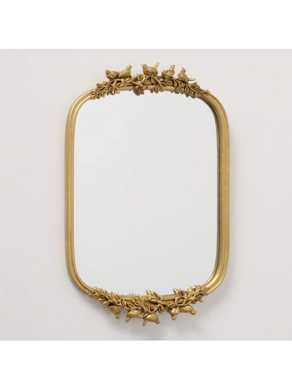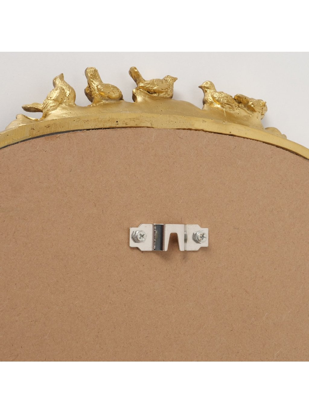 Jemne zaoblený tvar dopĺňajú bohato tvarované ornamenty s motívom lístkov a vtáčikov, ktoré dodávajú rámu romantický a mierne aristokratický nádych.