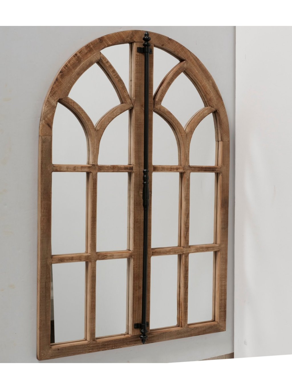 Zrkadlo Wilson pôsobí ako staré okenné krídlo, ktoré si našlo nové miesto v interiéri. Jeho oblúkový tvar a drevené priečky vytvárajú architektonický efekt a dodávajú priestoru hĺbku, rytmus a pokoj. Nie je to len zrkadlo – je to dominantný prvok, ktorý okamžite pritiahne pohľad.
