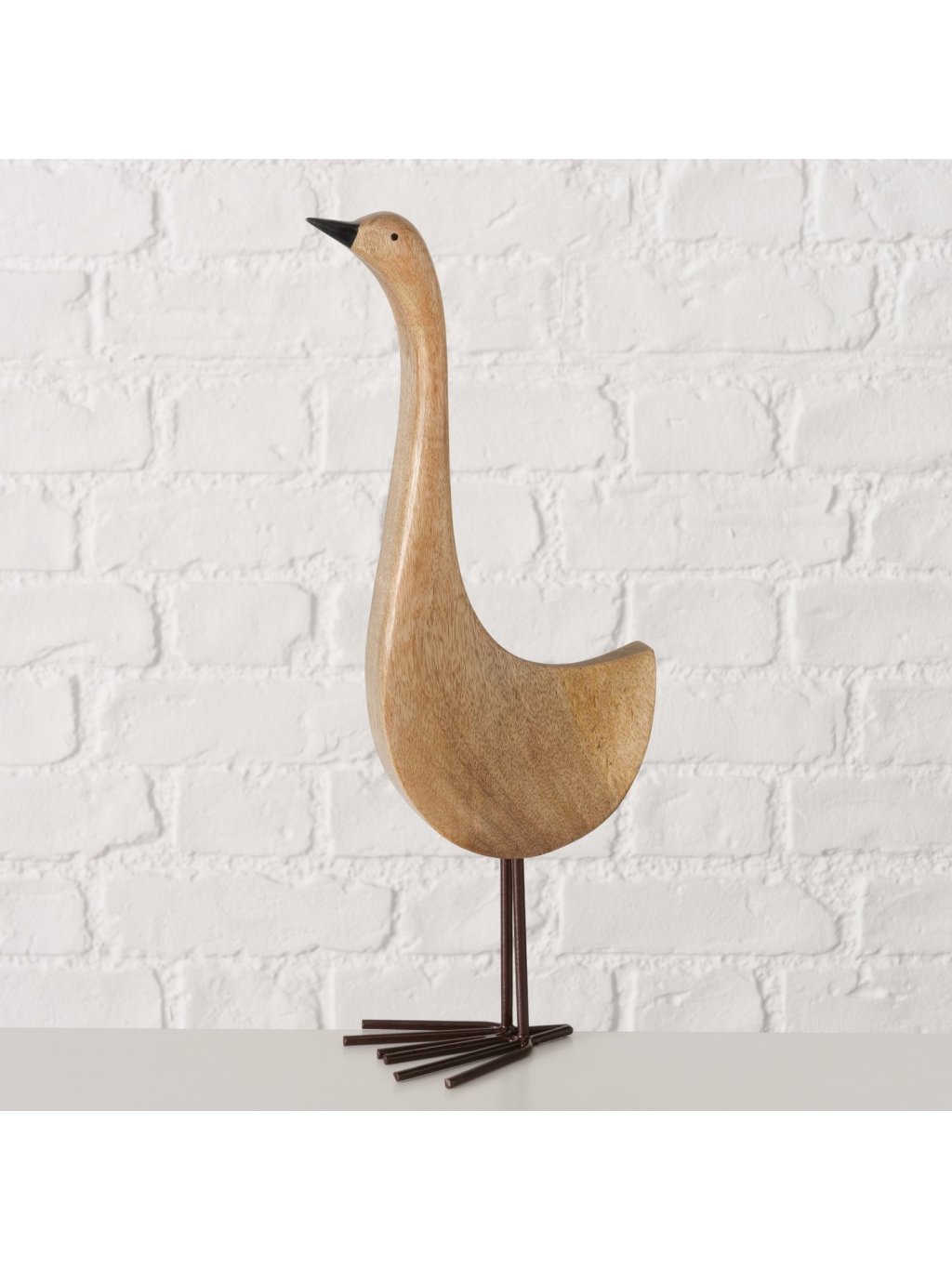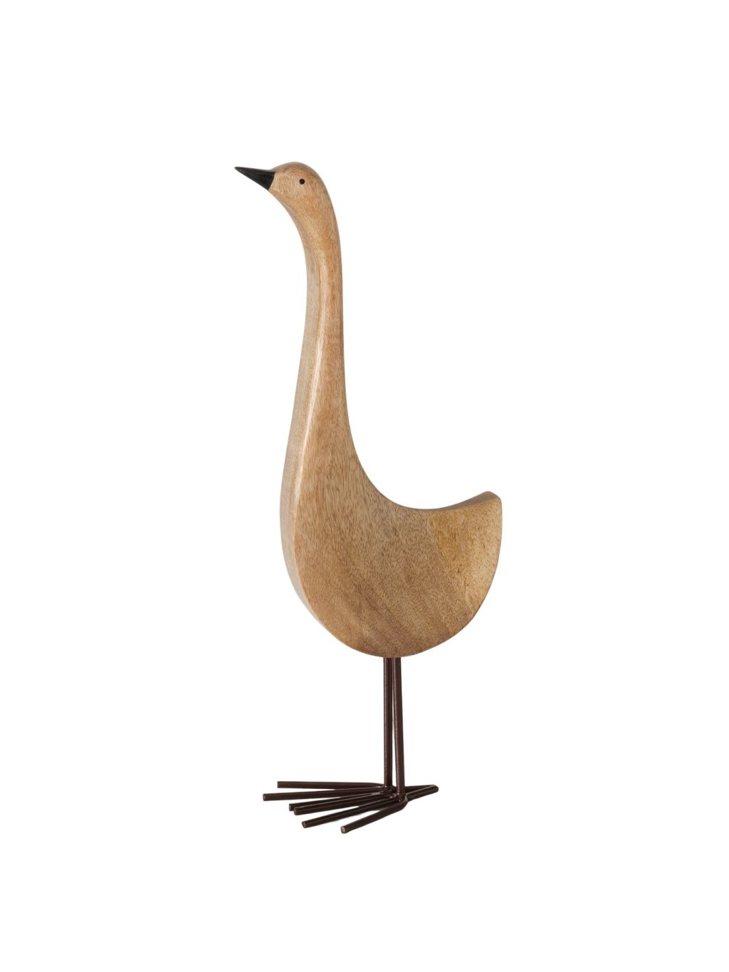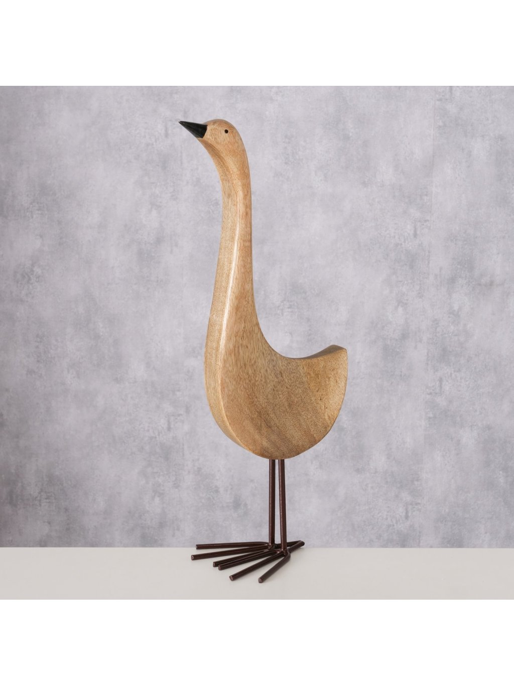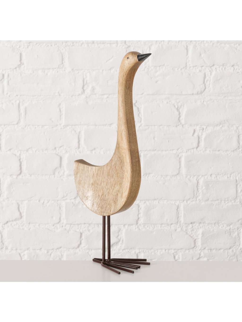 Kovové nožičky z práškovo lakovaného železa dodávajú figúrke stabilitu a jemný kontrast k teplému drevu. Vďaka svojej výške vynikne aj ako samostatný dekoračný prvok.
