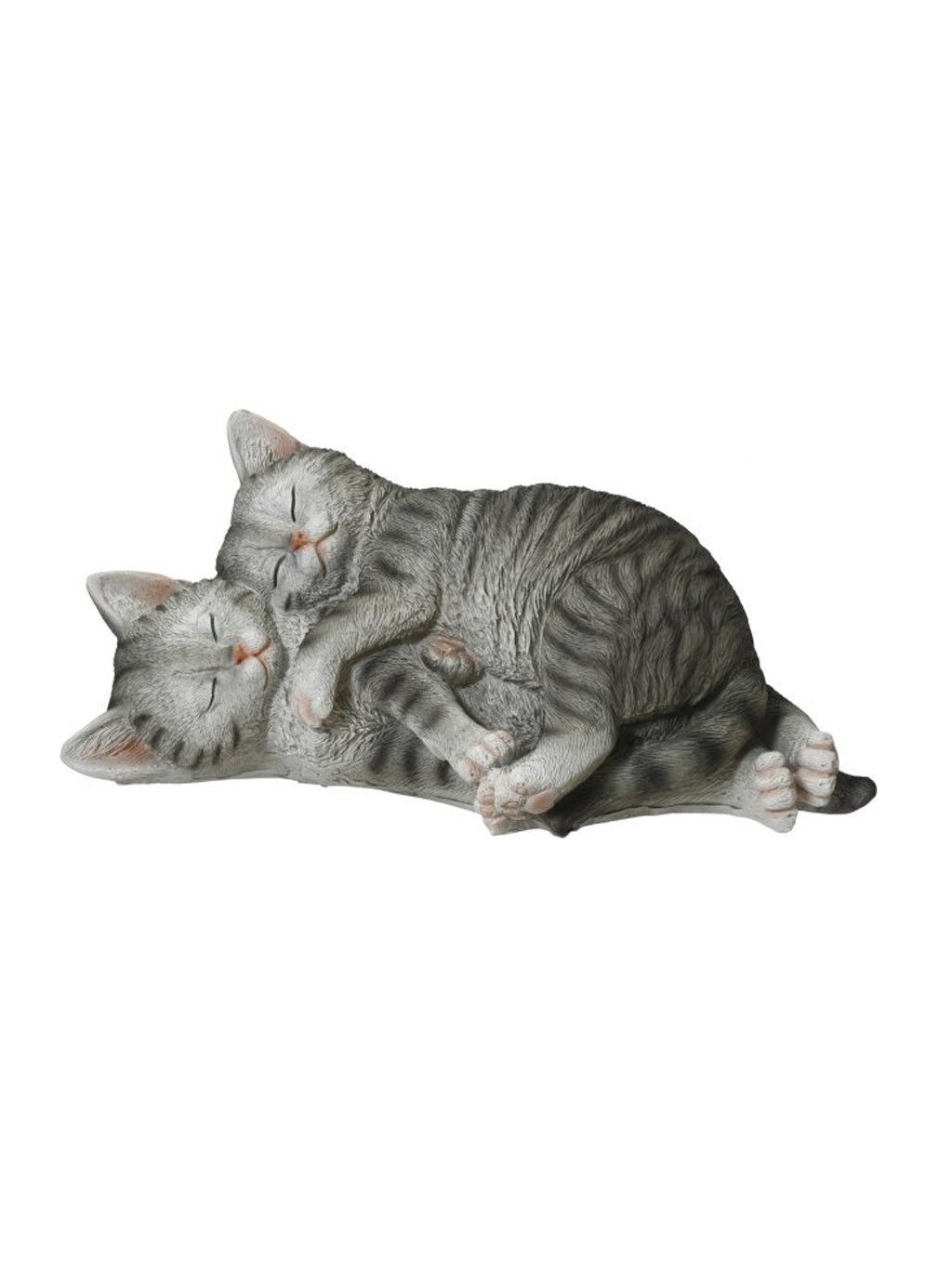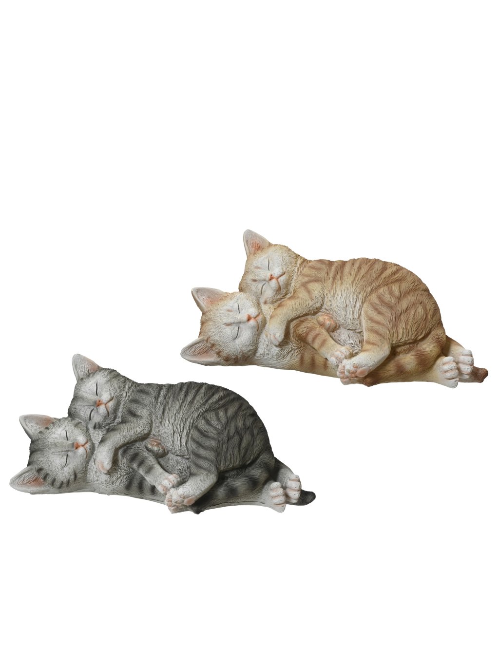 Figúrka je ručne spracovaná z polyresinu a pôsobí mäkko a prirodzene vďaka detailnej štruktúre srsti a jemnému farebnému prevedeniu. Dve mačky stočené k sebe vytvárajú harmonický tvar, ktorý nepôsobí dekoratívne nasilu – skôr upokojujúco a osobne. Ideálna tam, kde chcete zjemniť atmosféru bez zbytočných slov.