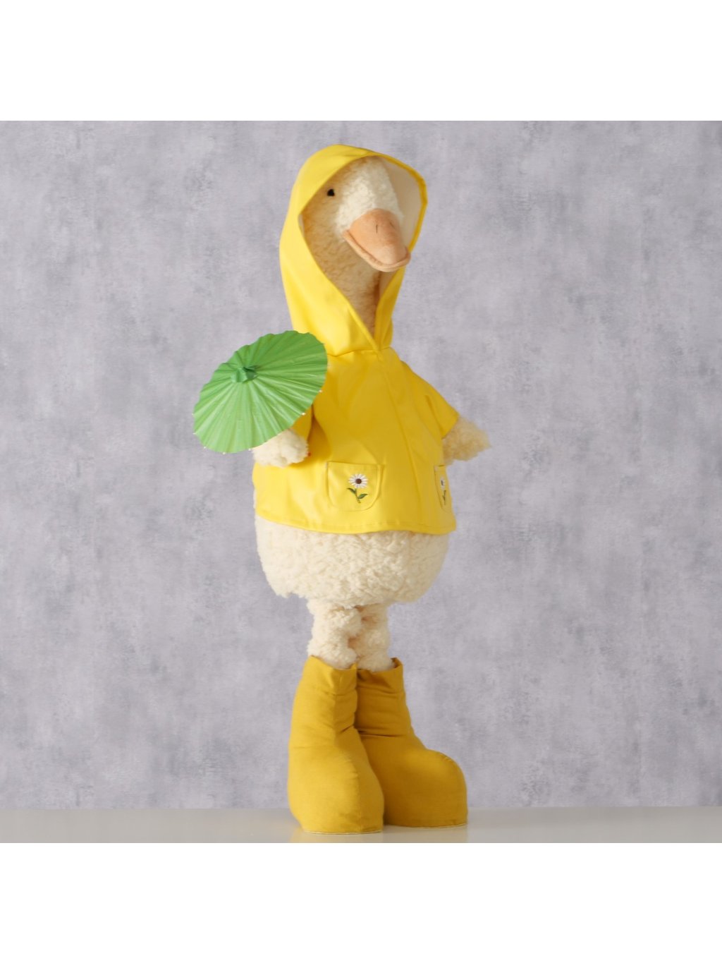 Goose je veľká stojaca figúrka husi, ktorá si Vás získa na prvý pohľad. Vďaka svojej impozantnej výške 107cm, veselému výrazu a žltému pršiplášťu pôsobí hravo, optimisticky a úplne neprehliadnuteľne.