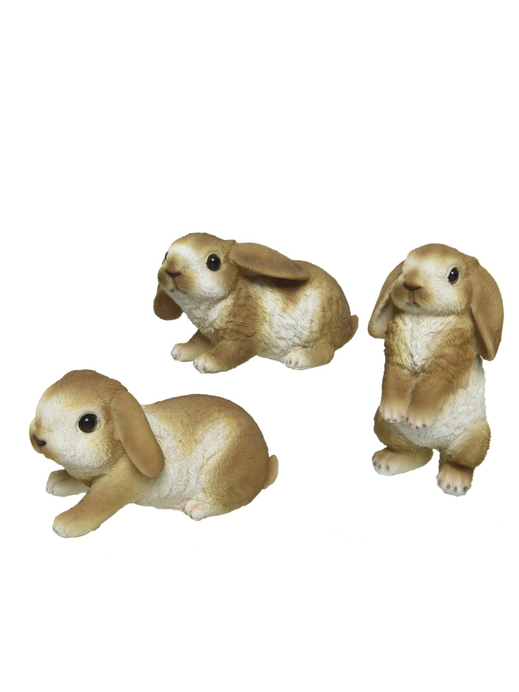 3 varianty zajačikov v rôznych polohách, vyrobených z odolného polyresinu v jemnom hnedom tóne. Realistické spracovanie a mäkké línie im dodávajú pokojný výraz, ktorý sa ľahko kombinuje s prírodnými dekoráciami aj jednoduchým moderným interiérom. Sú malé, no majú charakter.