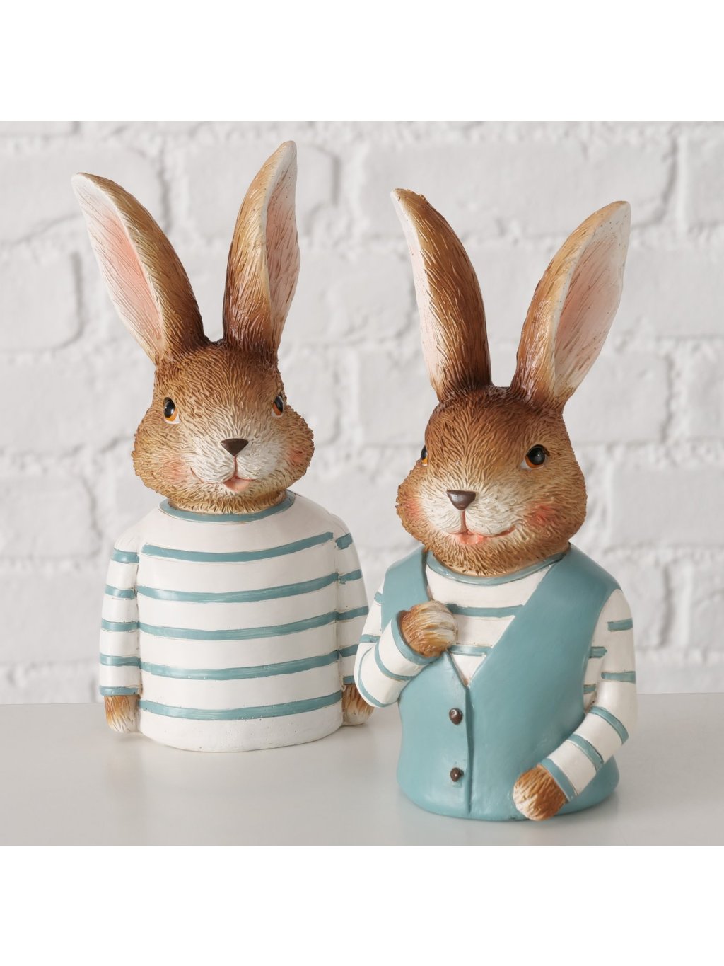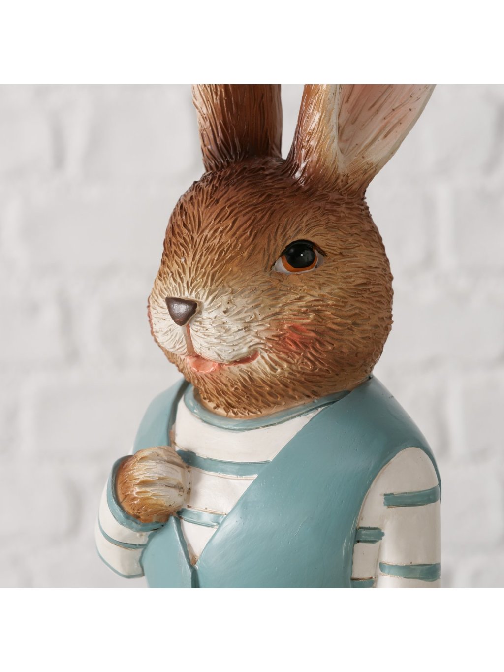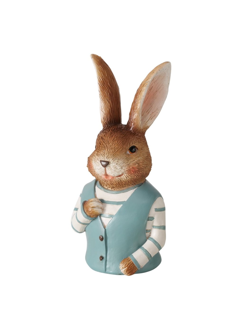 Zajac Jonas je dekoratívna figúrka z polyresinu, ktorá zaujme svojím oblečením a sympatickým výrazom. Kombinácia hnedých tónov so svetlomodrými detailmi pôsobí sviežo, jarne a zároveň príjemne nostalgicky – ako spomienka na rozprávkové postavičky z detstva.