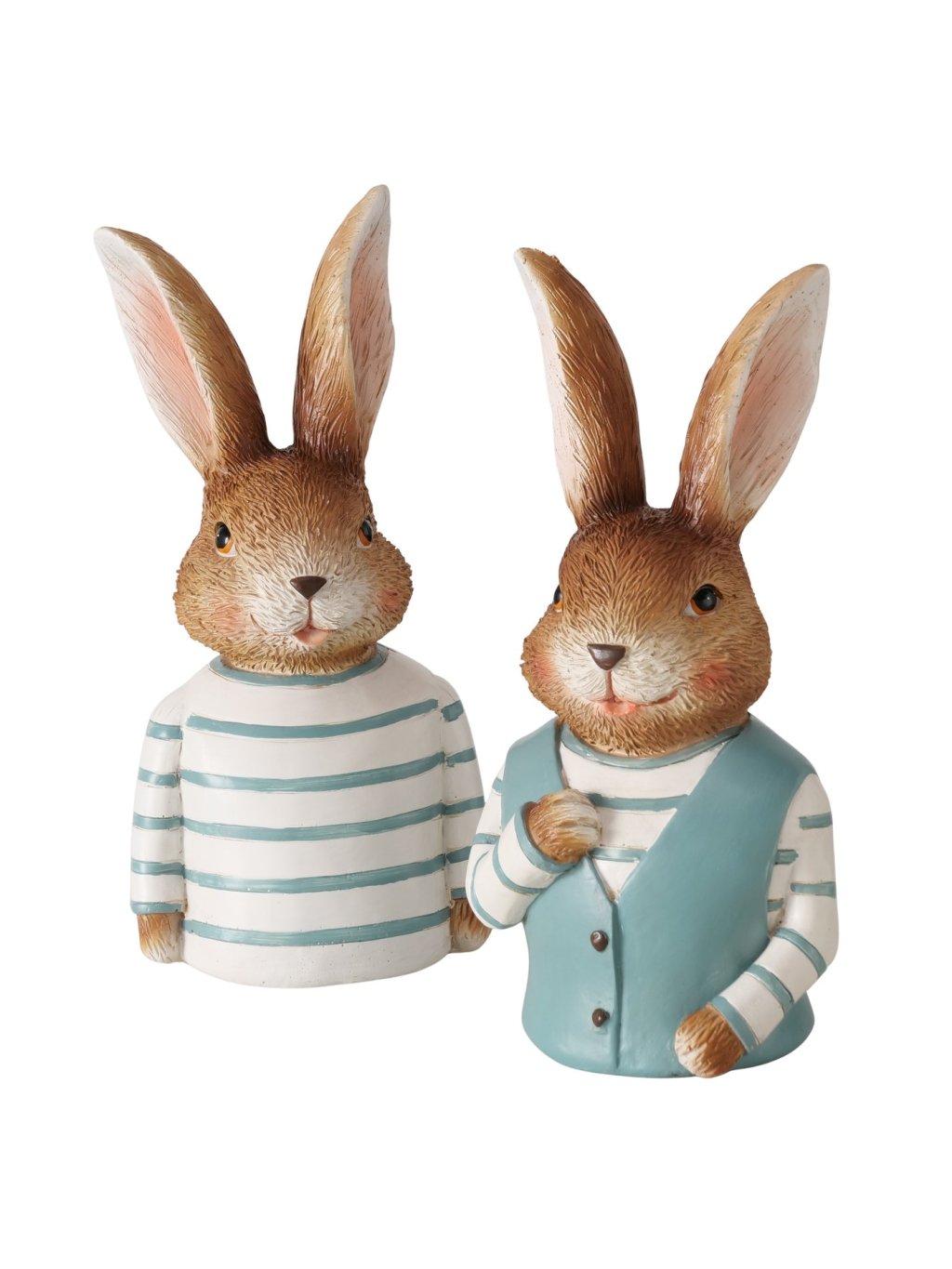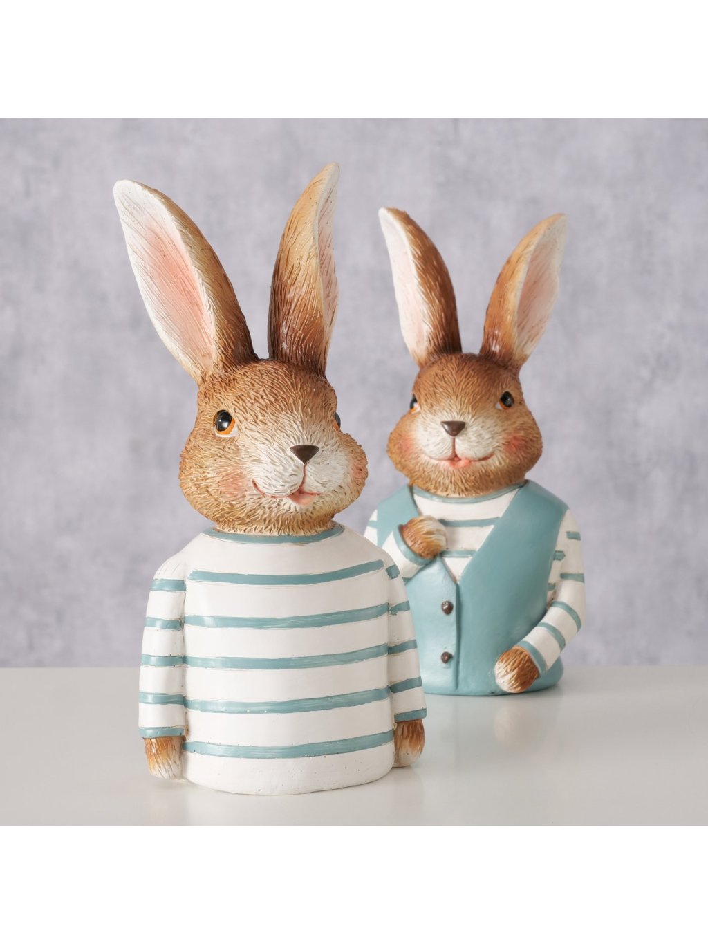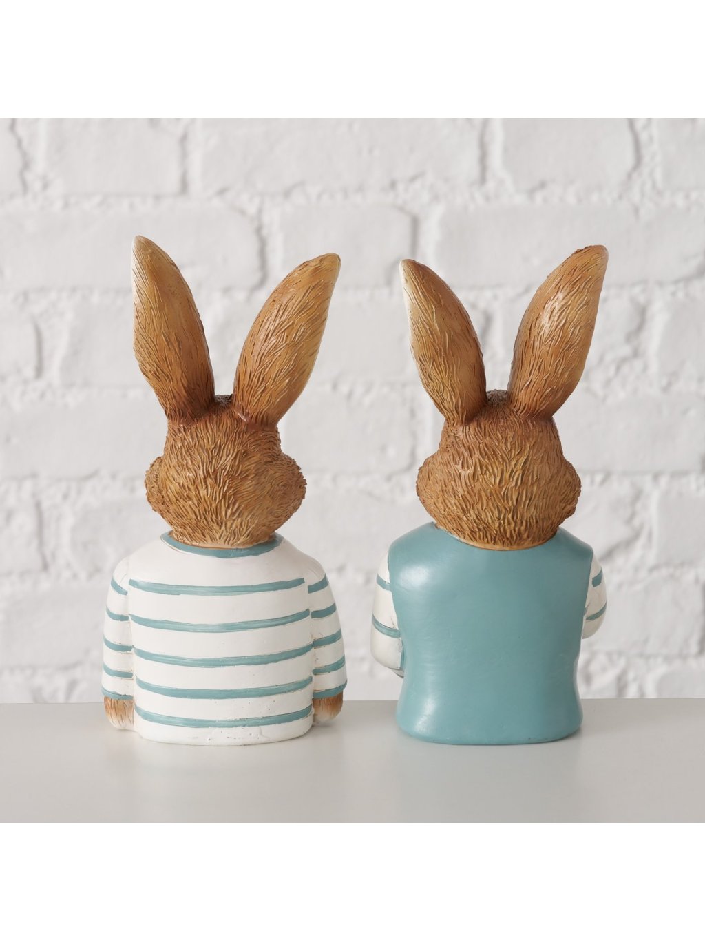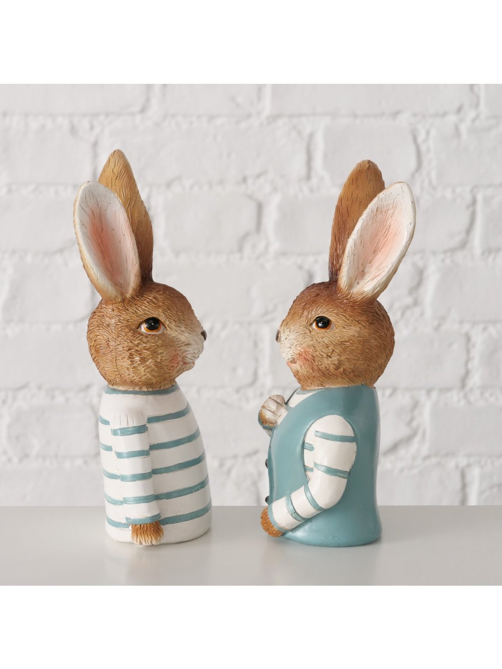 Zajac Jonas je dekoratívna figúrka z polyresinu, ktorá zaujme svojím oblečením a sympatickým výrazom. Kombinácia hnedých tónov so svetlomodrými detailmi pôsobí sviežo, jarne a zároveň príjemne nostalgicky – ako spomienka na rozprávkové postavičky z detstva.