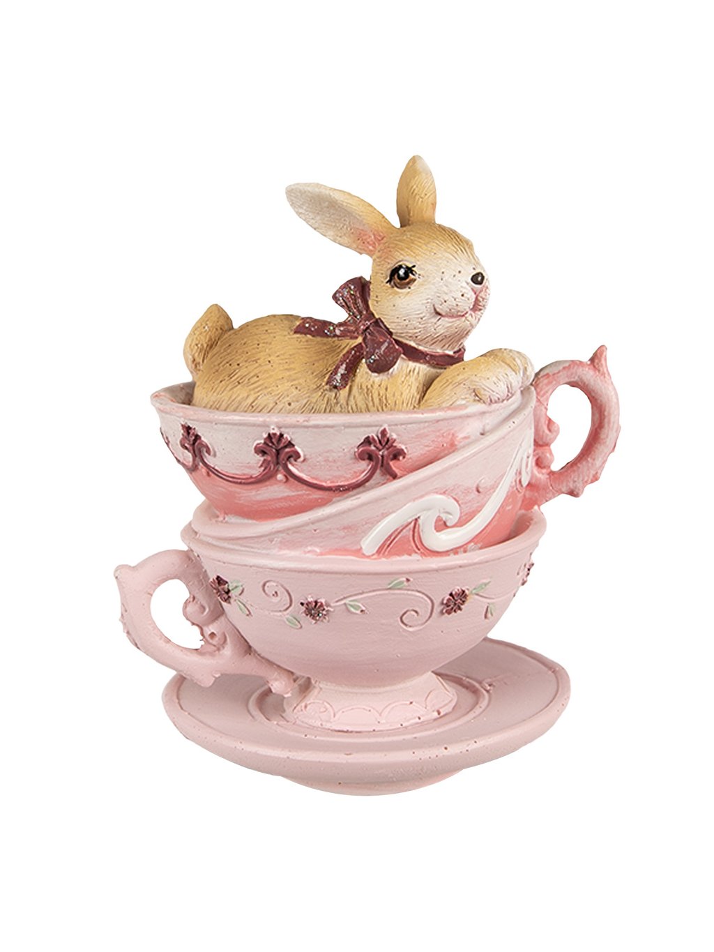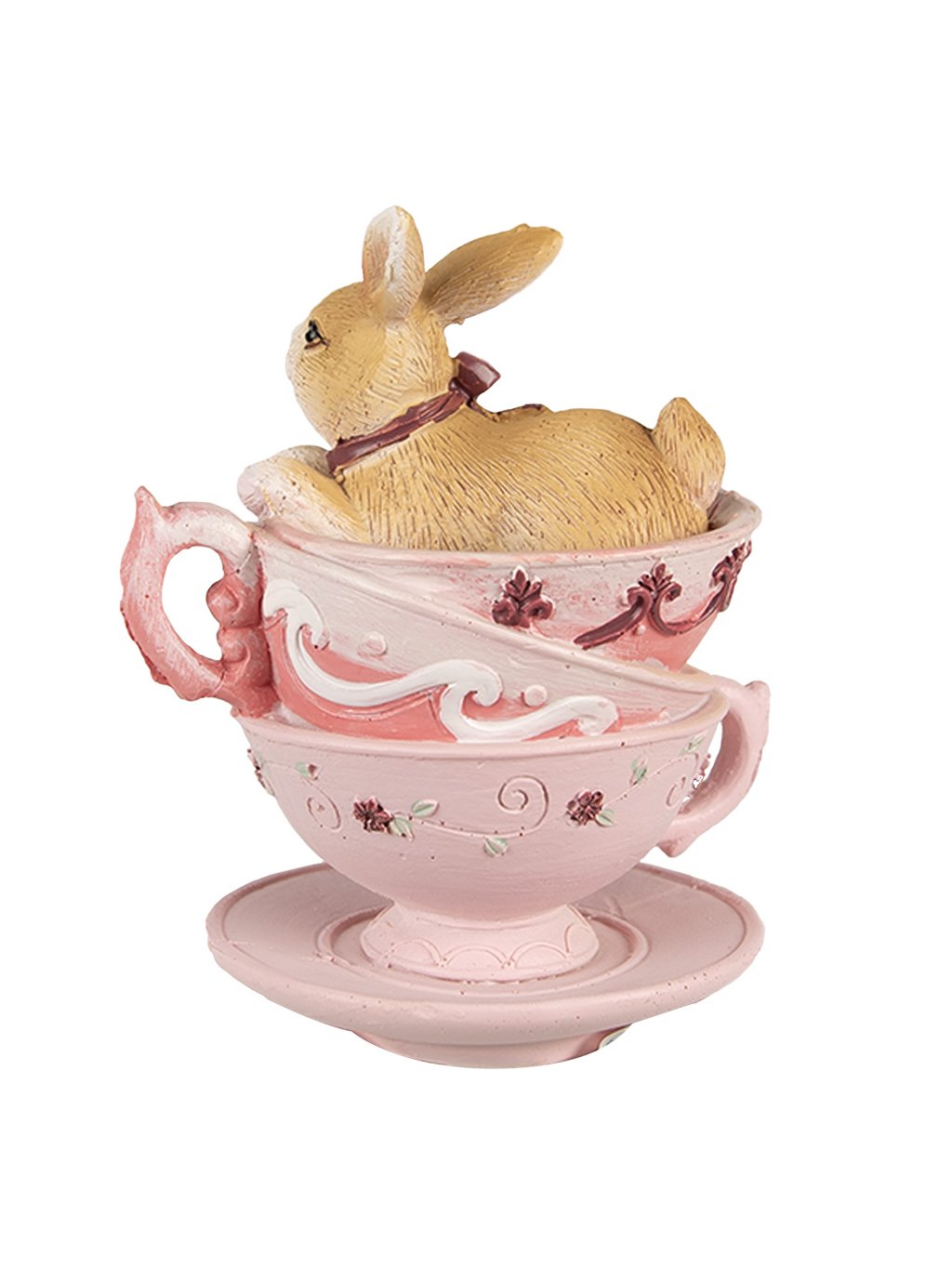 Vyrobená z odolného polyresinu, ktorý umožňuje precízne detaily a zároveň zabezpečuje dlhú životnosť. Hoci je perfektná na Veľkú noc, vďaka svojmu šálkovému motívu sa krásne hodí aj do kuchyne či ku kávovému kútiku počas celého roka.